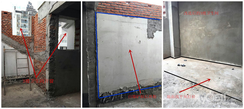 4.三楼卫生间有面墙肖工看出来粉的不平,看上去有点斜,安排师傅重新补正。