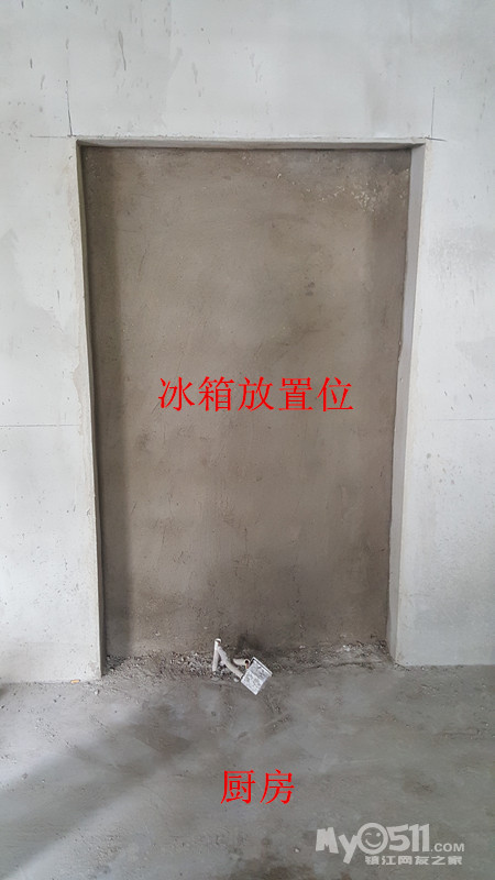 3.为了使冰箱不那么突出厨房高柜,又和肖工、老师傅将墙上敲半墙厚度的尺寸确定了。本来以为敲个半墙很容易,但现场师傅说敲出来的洞不好粉平,征求了肖工意见,将墙先打通,再重新砌半墙,容易施工并且也不影响防水,就这么决定了。还有厨房梁下两边砌个小垛子給漏掉了,肖工让他们补上,并重新确定了尺寸。