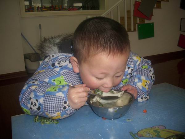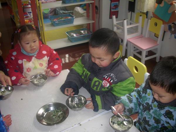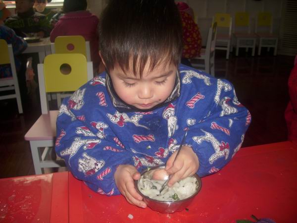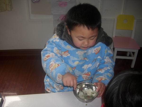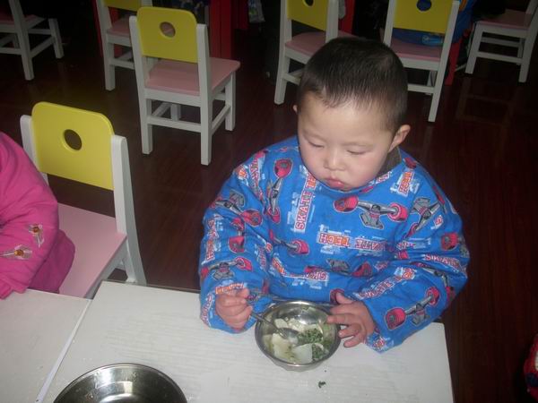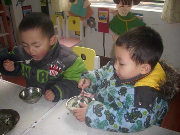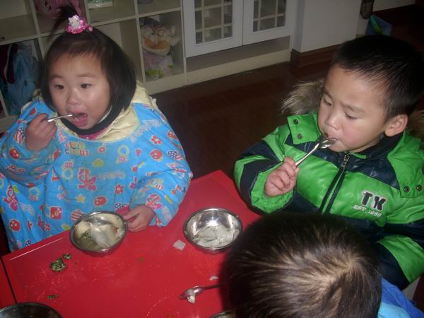 今天的饺子很受欢迎,每个孩子都吃了最起码四个饺子,最多的八个哦,厉害