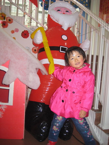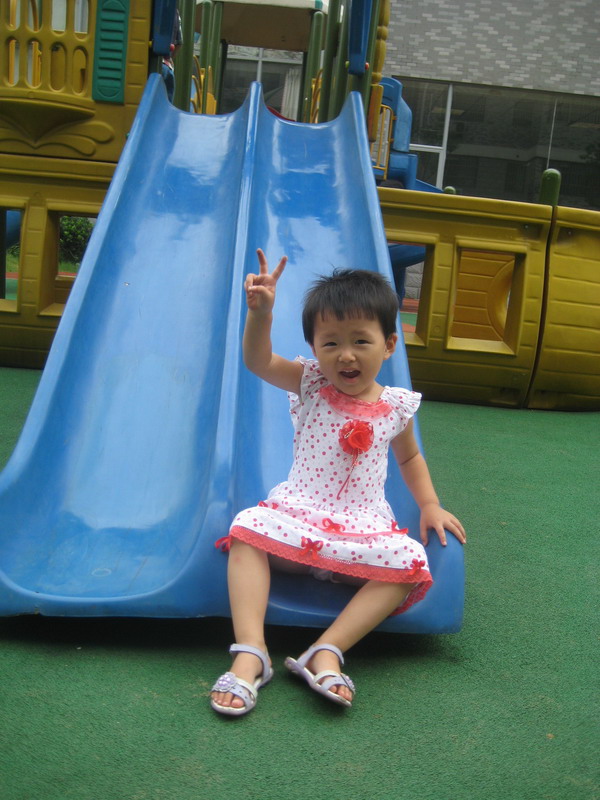 王婧怡在幼儿园玩滑滑梯