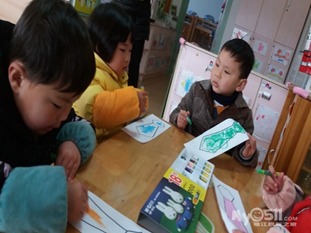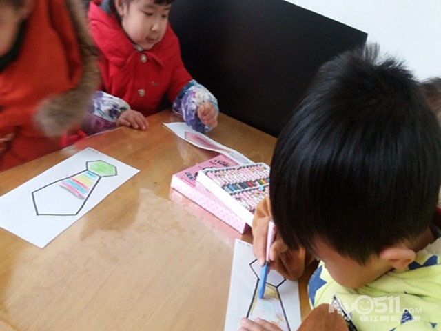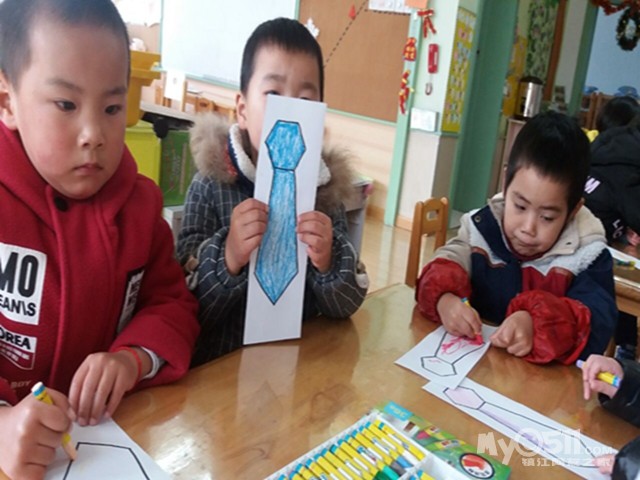 孩子们问我:“老师,看我给爸爸画的领带好看吗,我要送给我爸爸!”