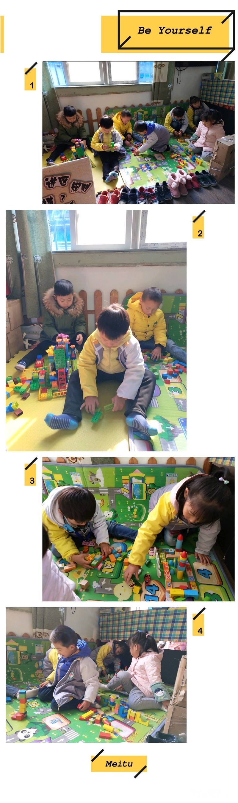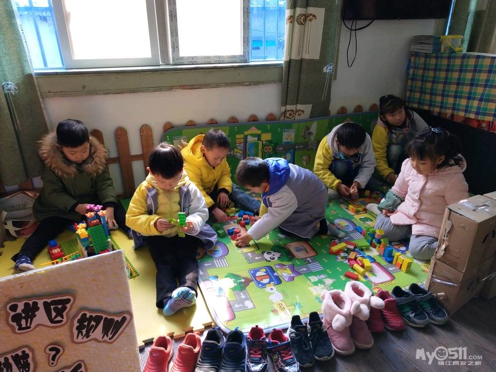小朋友们正在开心的拼搭积木。