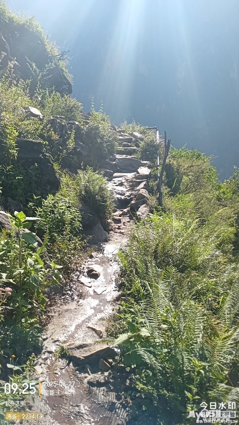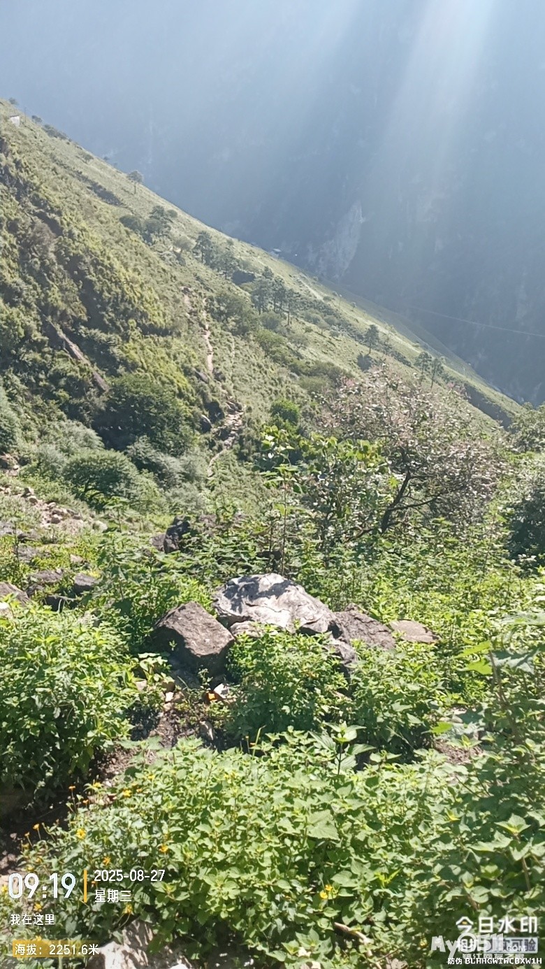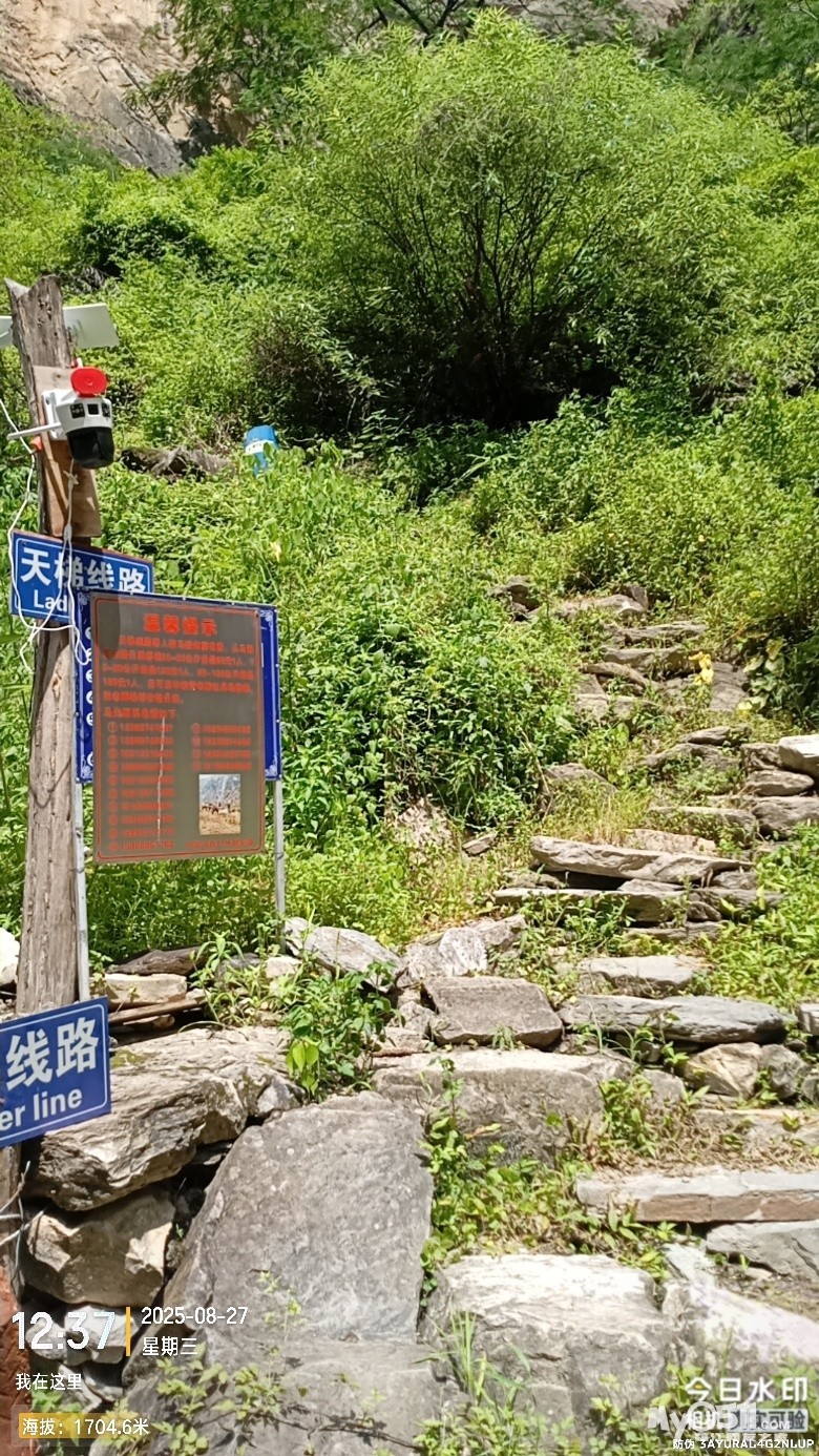 计划不如变化,上张老师客栈的路塌方不通了,只能从天梯上去,再走盘山公路往下,前往张老师客栈停车场。