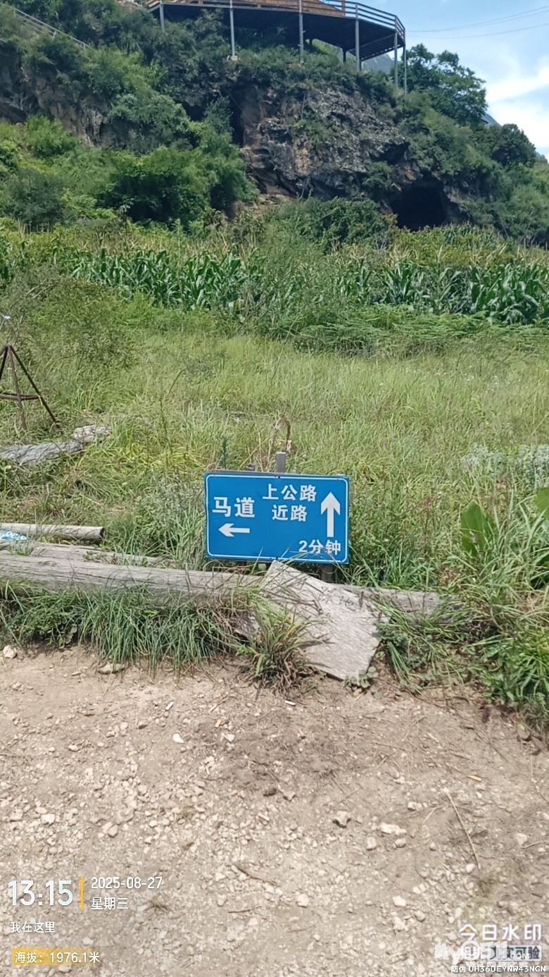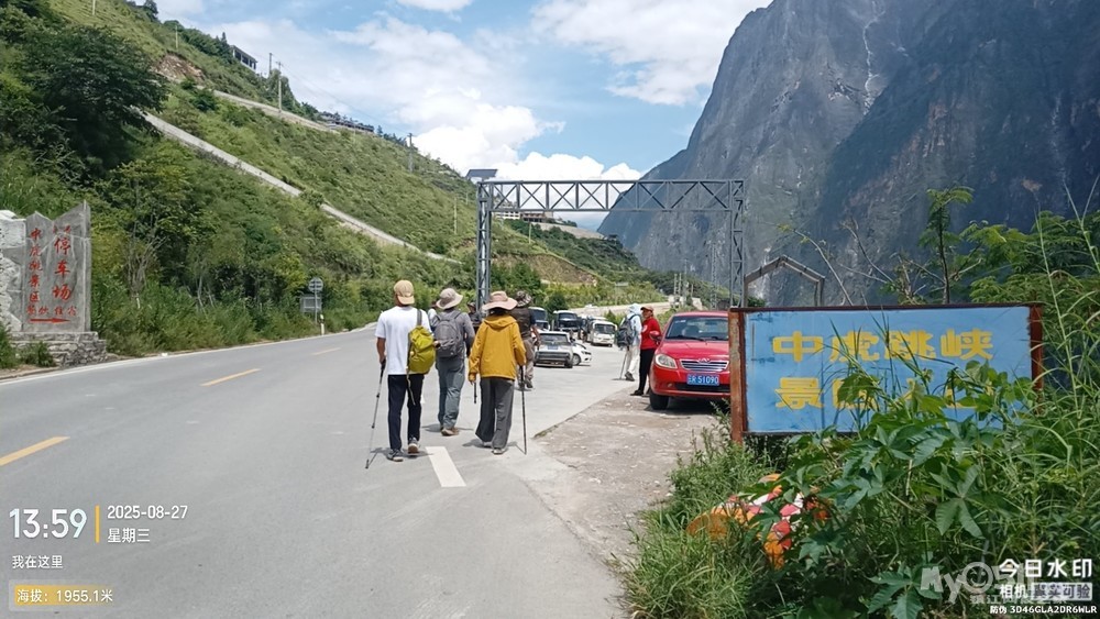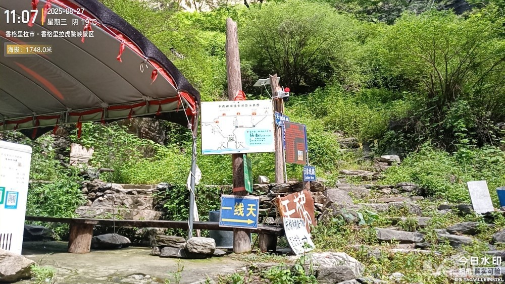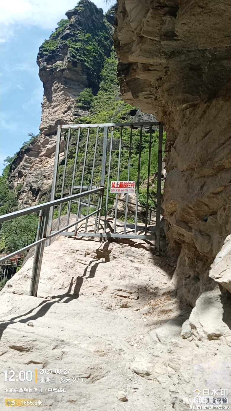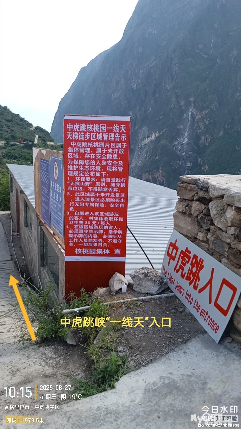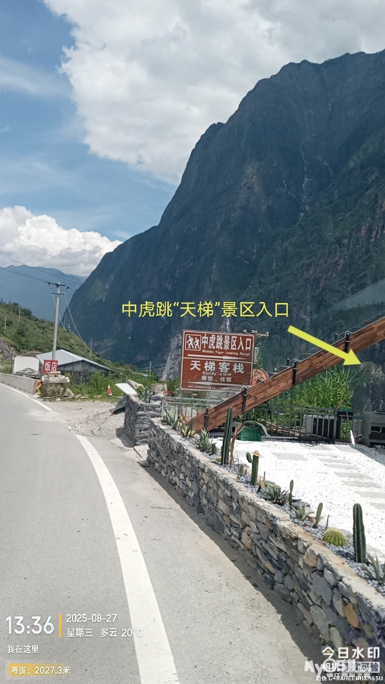 经过大桥,路过中虎跳“天梯”景区入口,大约14分钟左右,到达中虎跳“一线天”入口。