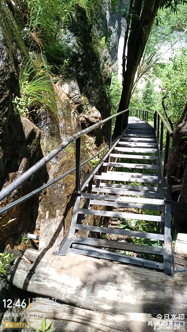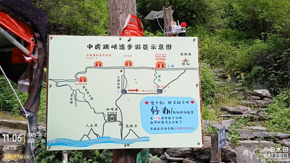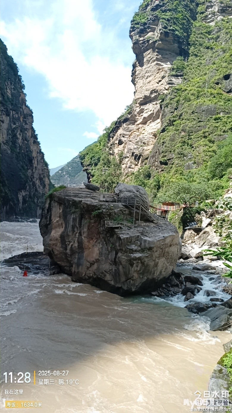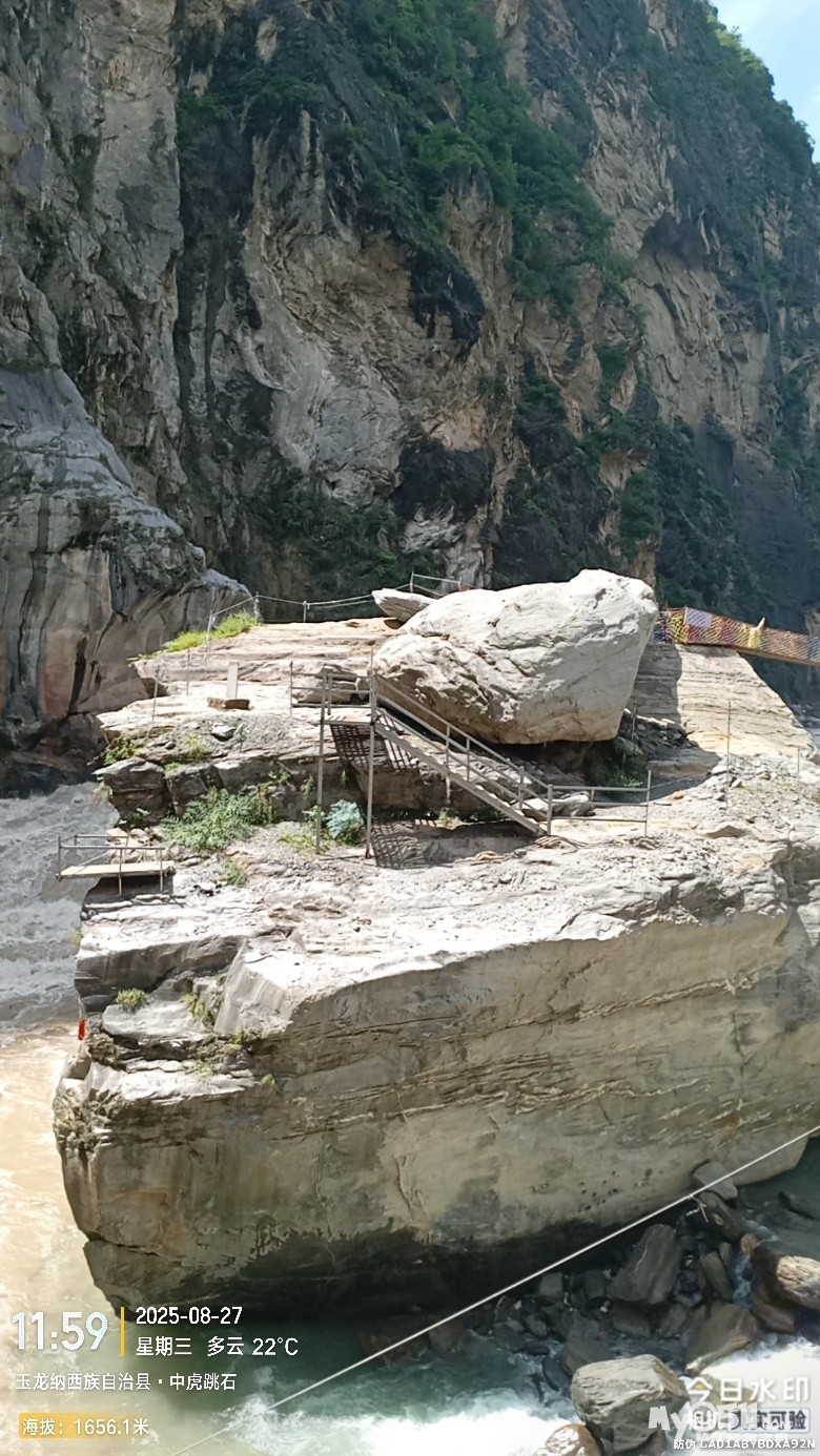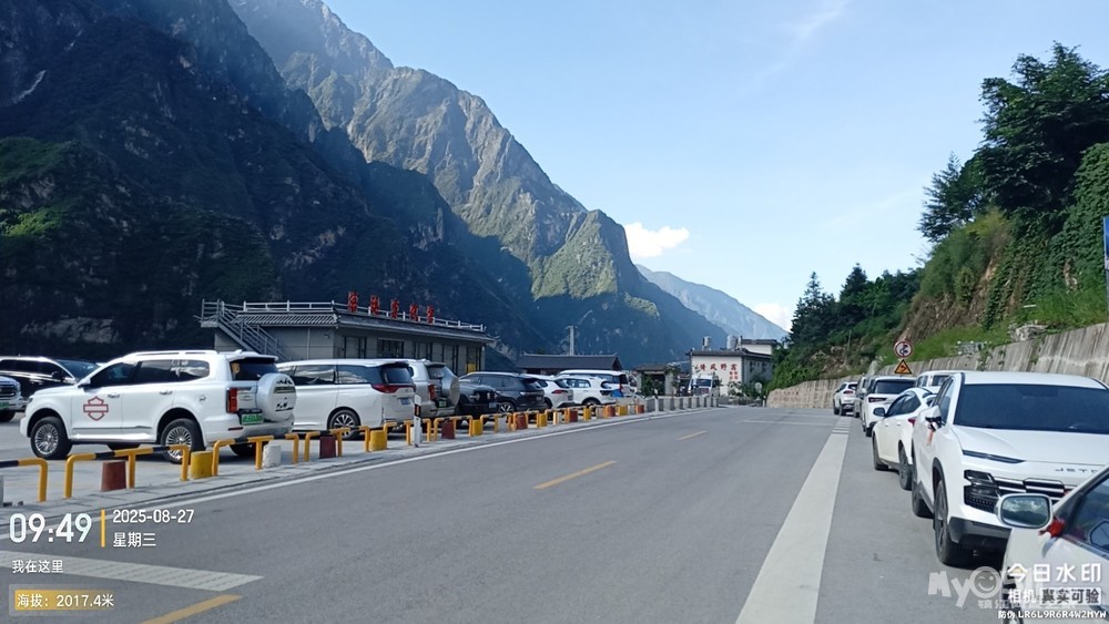 经过大桥,路过中虎跳“天梯”景区入口,大约14分钟左右,到达中虎跳“一线天”入口。