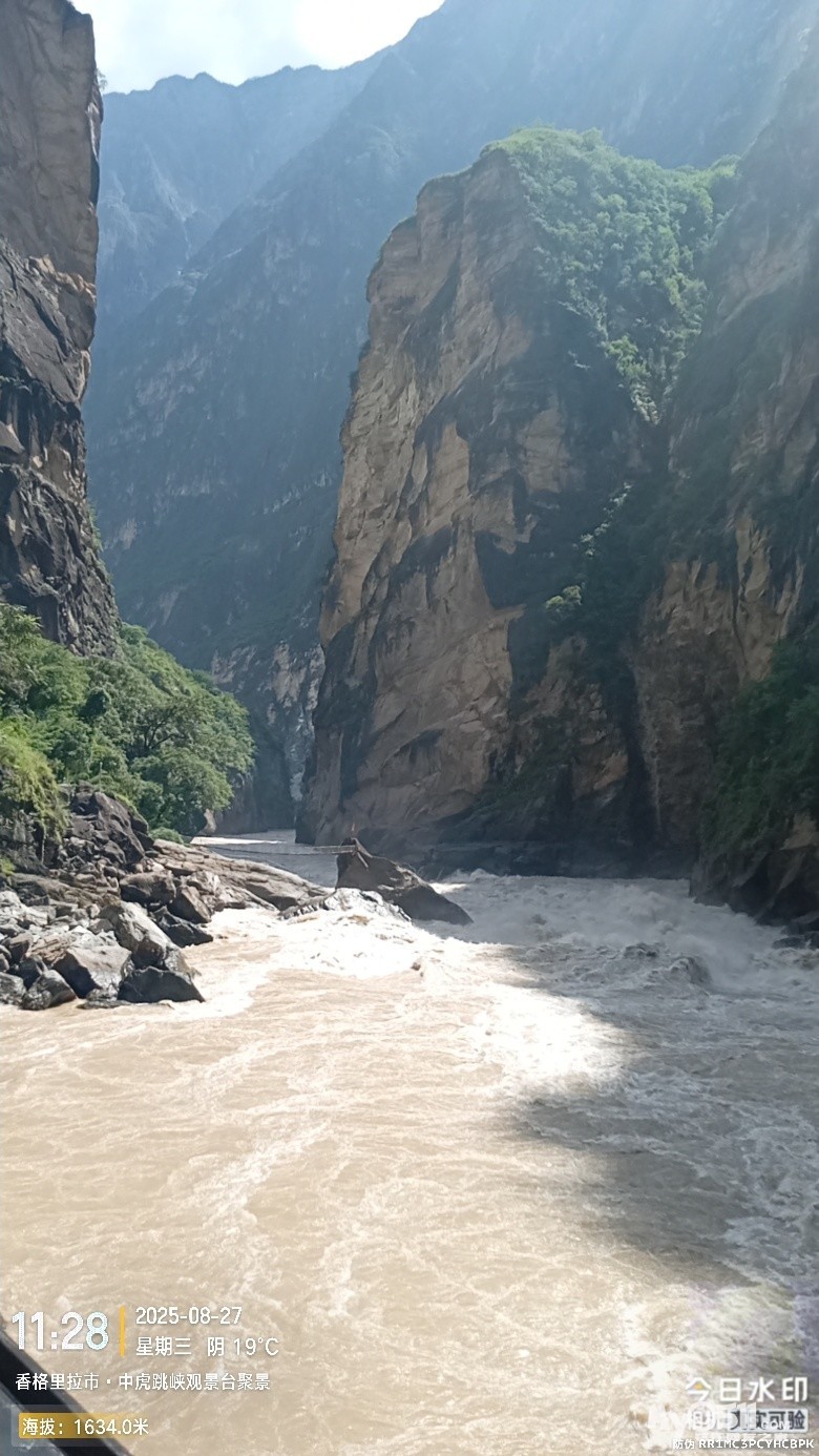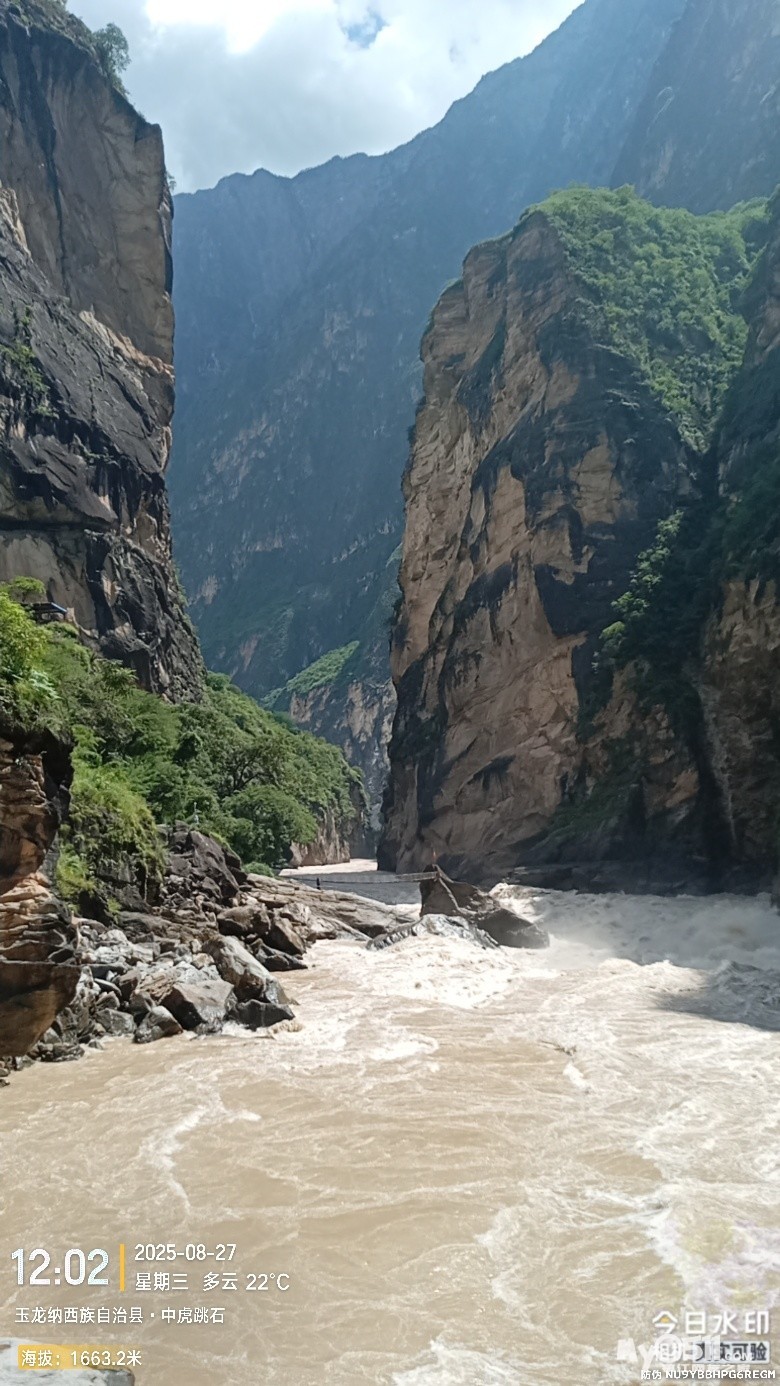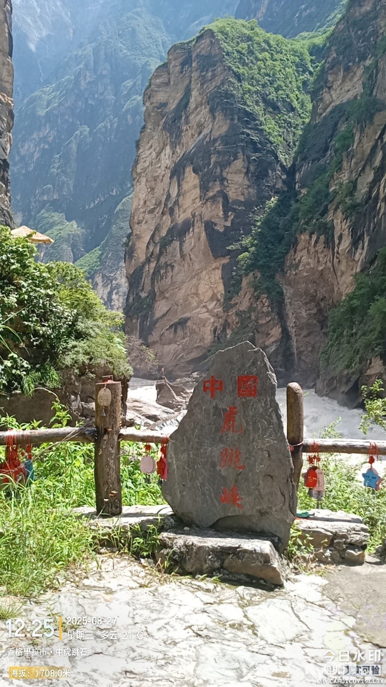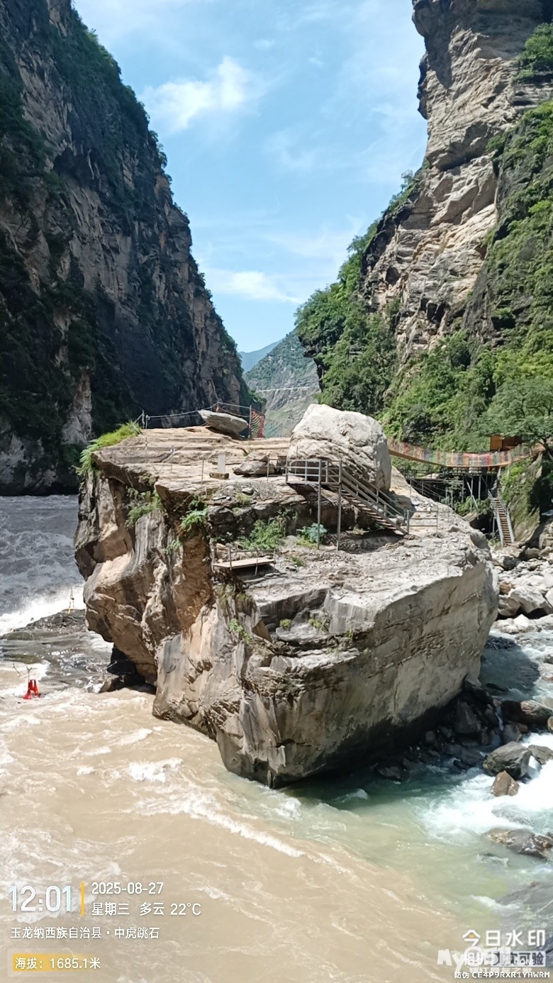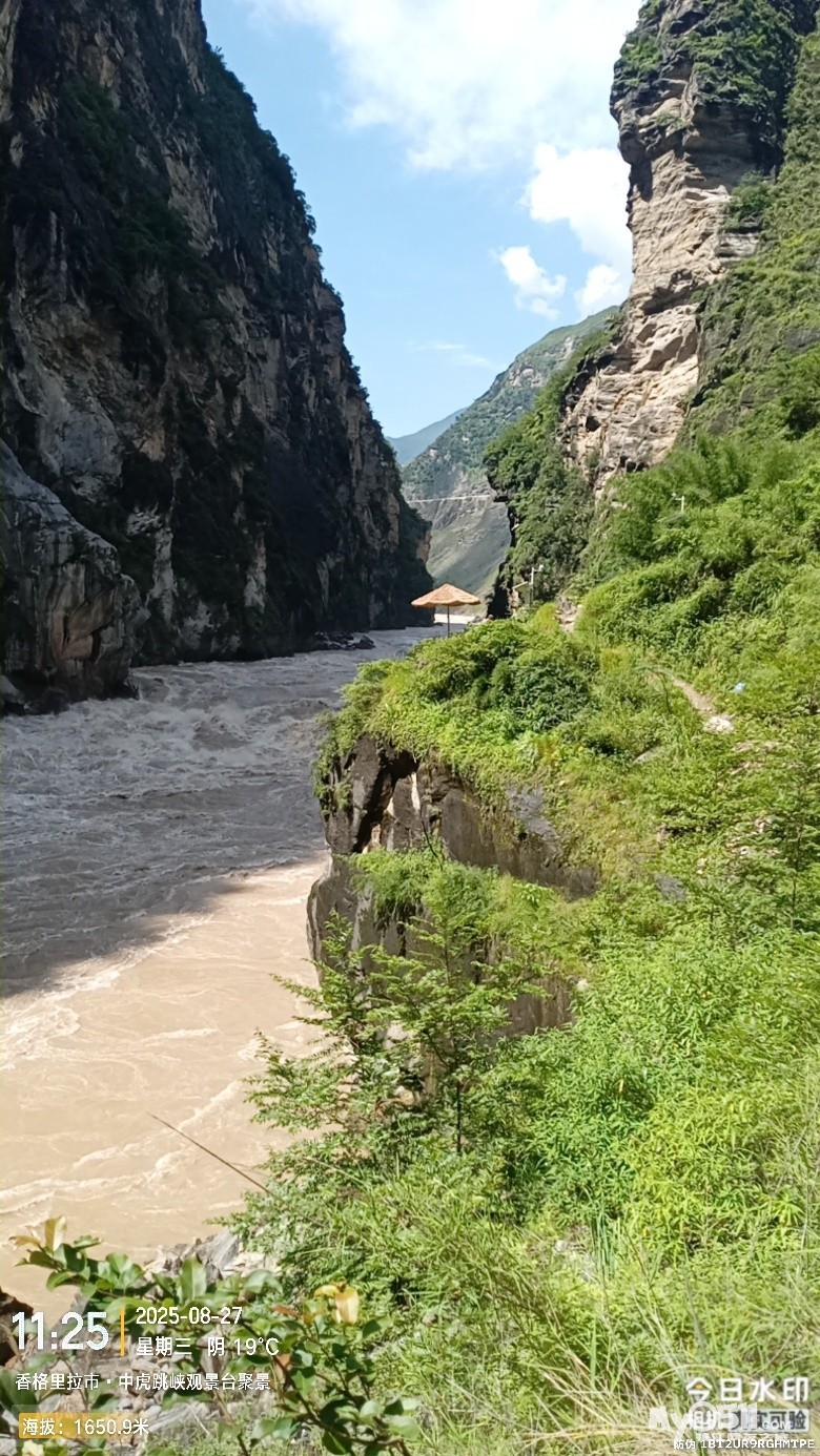 经过大桥,路过中虎跳“天梯”景区入口,大约14分钟左右,到达中虎跳“一线天”入口。