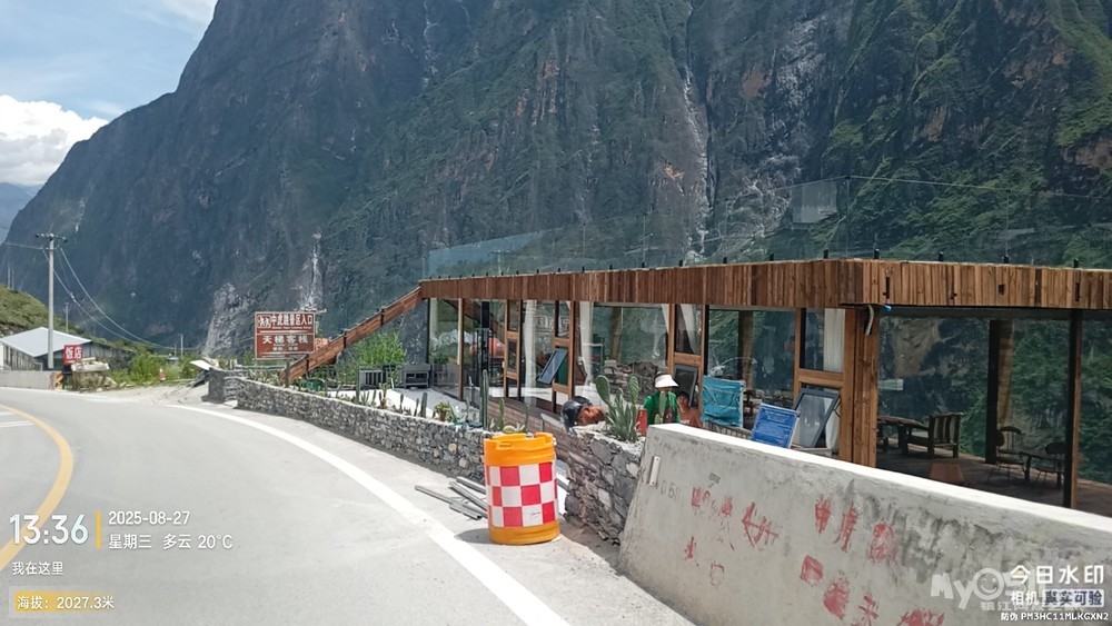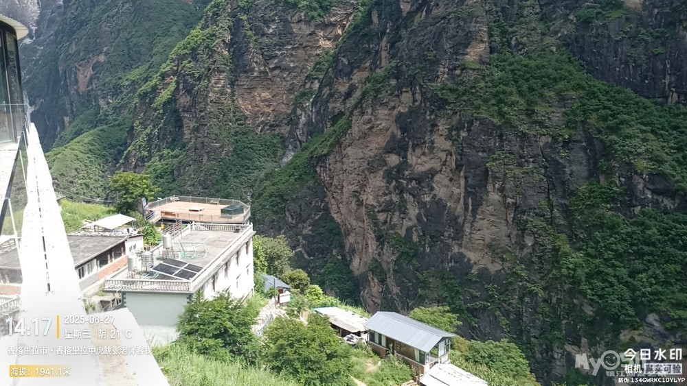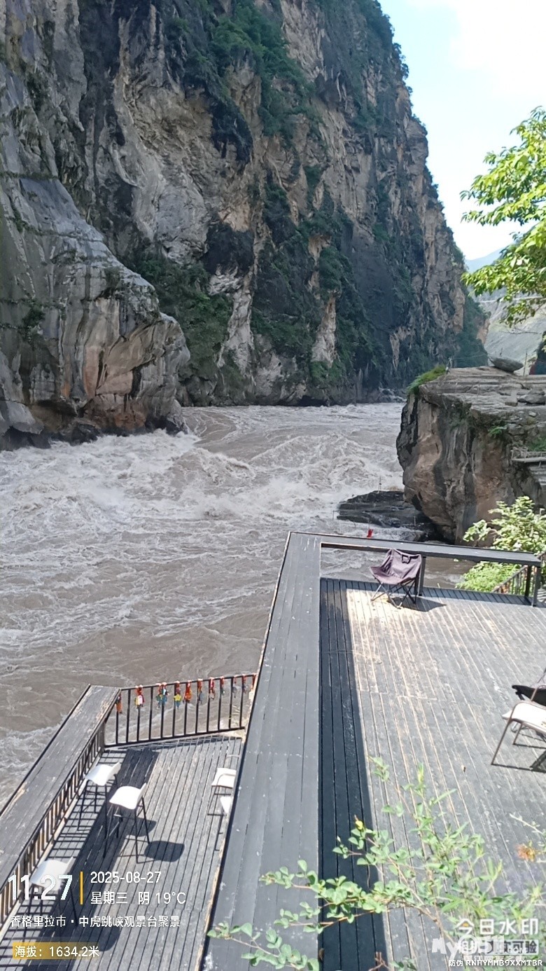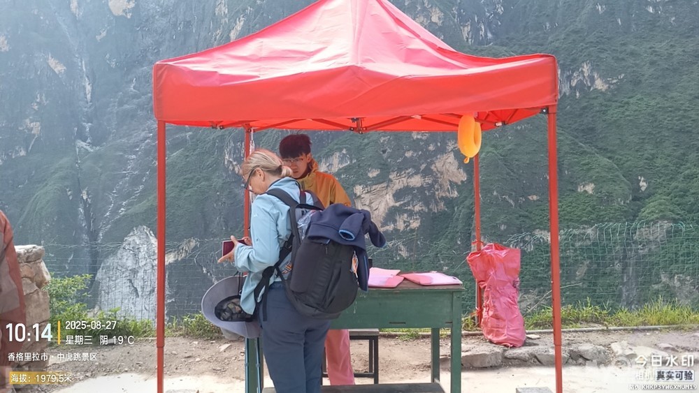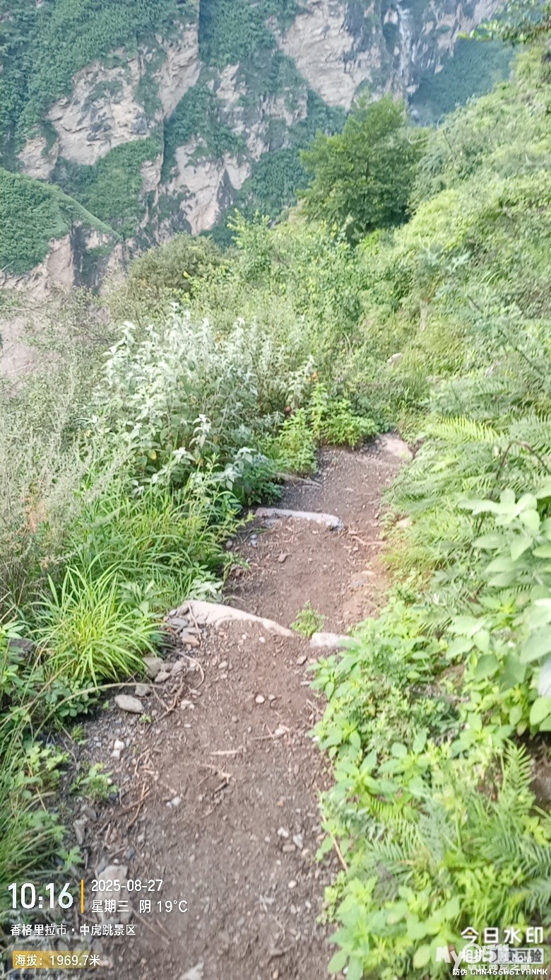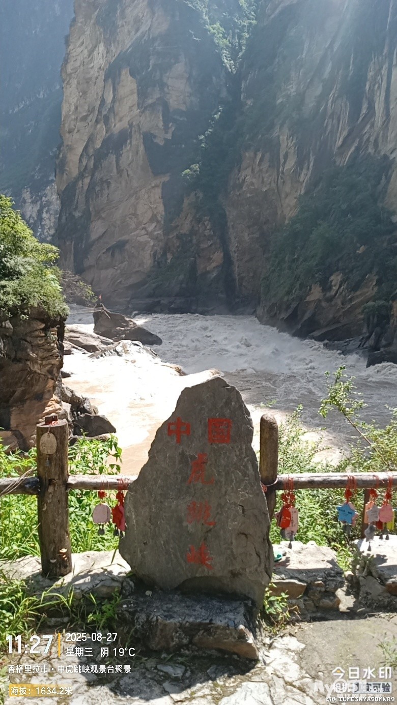 经过大桥,路过中虎跳“天梯”景区入口,大约14分钟左右,到达中虎跳“一线天”入口。