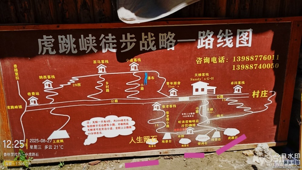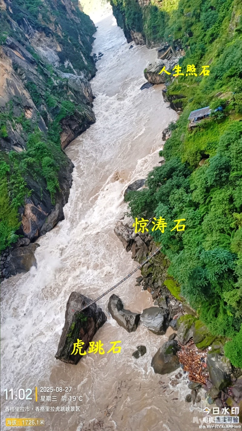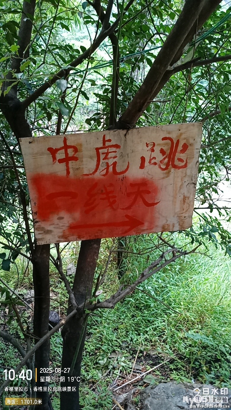 我的虎跳峡徒步轨迹,是走中虎跳“一线天”的,所以走左边方向。