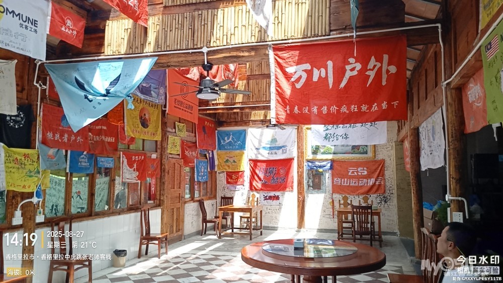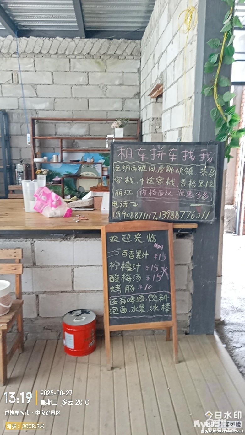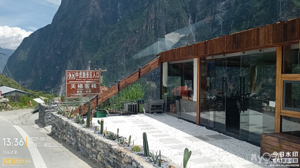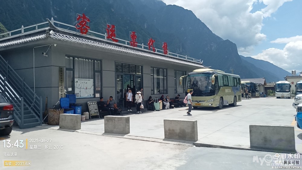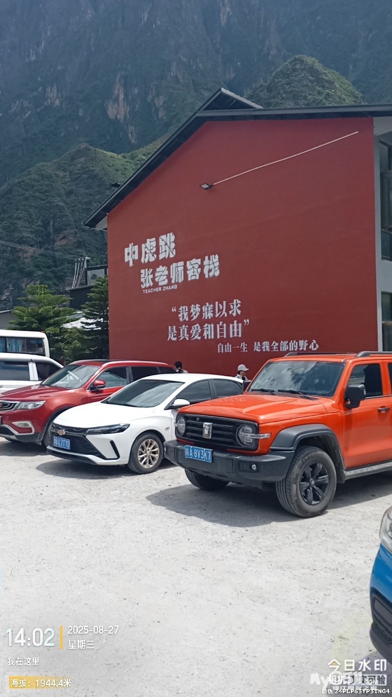 原来准备中虎跳峡来一个环线,从一线天下,从张老师客栈出,我订的回丽江的中巴,就在张老师客栈停车场。