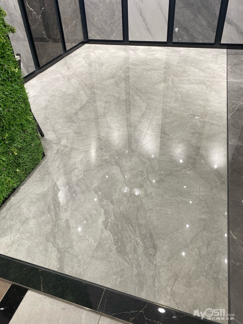 进店便一眼看中了宏陶1m5的大板,浅浅的灰色,店里还有一小片地上贴好了的出样,开灯和关灯的效果都比较了一下,还挺喜欢的