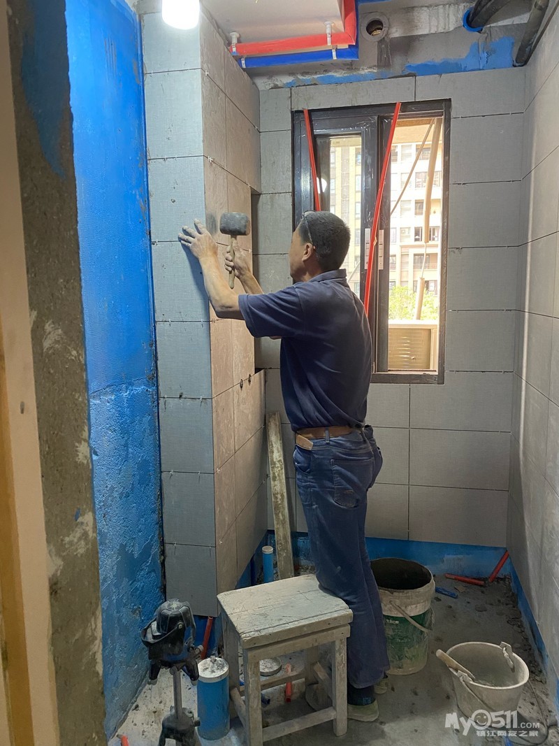 瓦工贴砖中…