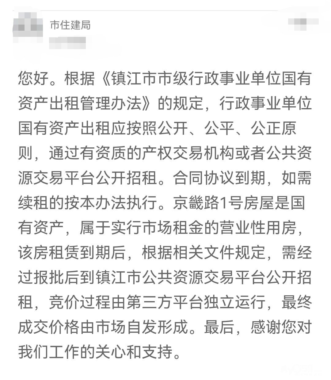 镇江市京几路有一处好像房管局的老房子,100 个平方,网上公开拍卖,5 年的租凭权,第一年房租拍卖 到了28 万。那么这么高的价格在市场上引起轩然大波,由此引发了现在路好多房东后面要涨房租。目前楼上下三四十个平方一间铺面,已经从去年初的一两万,现在涨到了七八万,那么房租再继续上涨的话,必然会把这个价格转嫁到商品上,所以京几路还目前还达不到西津渡、东关街和夫子庙路的水平,所以说这对于京几路良性发展非常不利,游客会觉得我们京几路的商品价高质低,市场网络美誉度会降低。我们希望政府有关部门不要再进行房子等等的拍卖,这种行为等于是博取了部门眼前利益杀鸡取卵,以人为的炒作推高房价,推高商铺的运营成本,从而对整个网红街的发展造成非常不利的影响。所有商户现在普遍都忧心忡忡,担心后面房租会涨价,造成他们经营困难。还有如果西津渡城建公司在京几路和伯先路等地有存量用房出租也要避免用这种公开炒作,副作用很大的方法。
