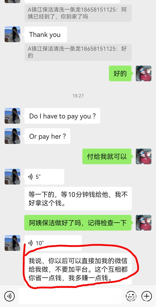 如果你是客户找了一家保洁公司,安排的阿姨给你要微信和电话号码,说以后直接找她,碰到碰到了你会怎么做