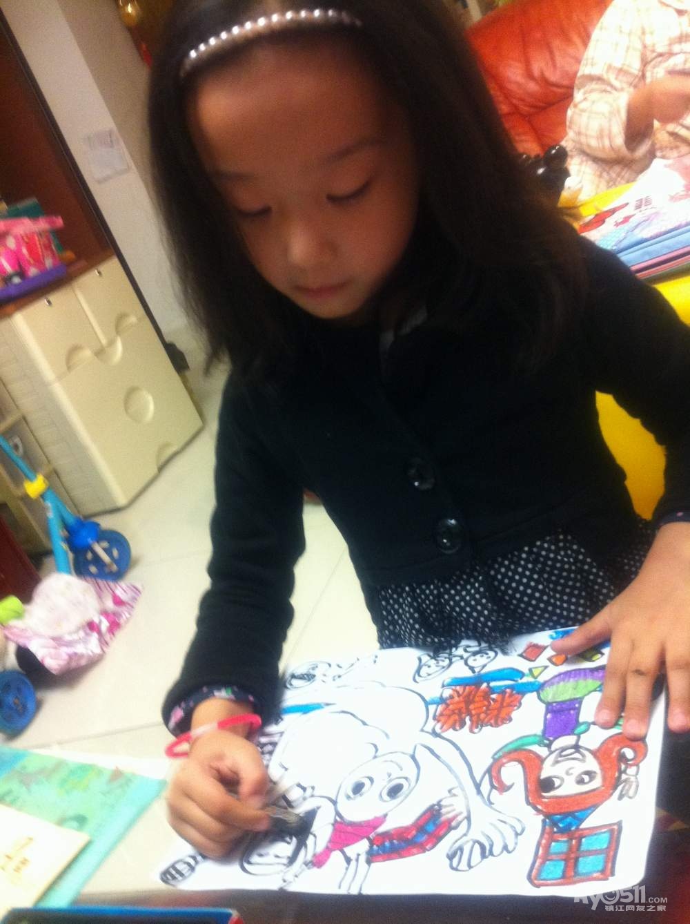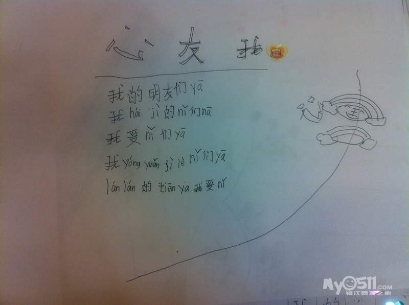 读完书后,我让她睡觉,她说今天不想睡觉,想做点自己热爱的事情,我也随了她,让她放松一下。等我忙完一些事,看看太晚了,坚持让她睡去了。这时她设计了一张给妈妈打分的表格、自己打分的表格,还有个卡片、重点写了一首诗,虽然有些错别字,但很有感情,也能读得通,她把‘爱’写成了‘受’,‘朋’写成“明”、de”写成‘le’等,明天再给她纠正一下了。看来让她做自己喜欢做的事是件很愉快的事情,也可以发挥她的创作欲,可惜这样的时间太少了,只能休息天才有放松的机会,这两天就让她快乐地做回小鸟吧,自己也努力做个好妈妈。做好妈妈好难哦!做好妈妈好甜蜜哦!大家一起共勉吧!(夜猫子深夜两点)