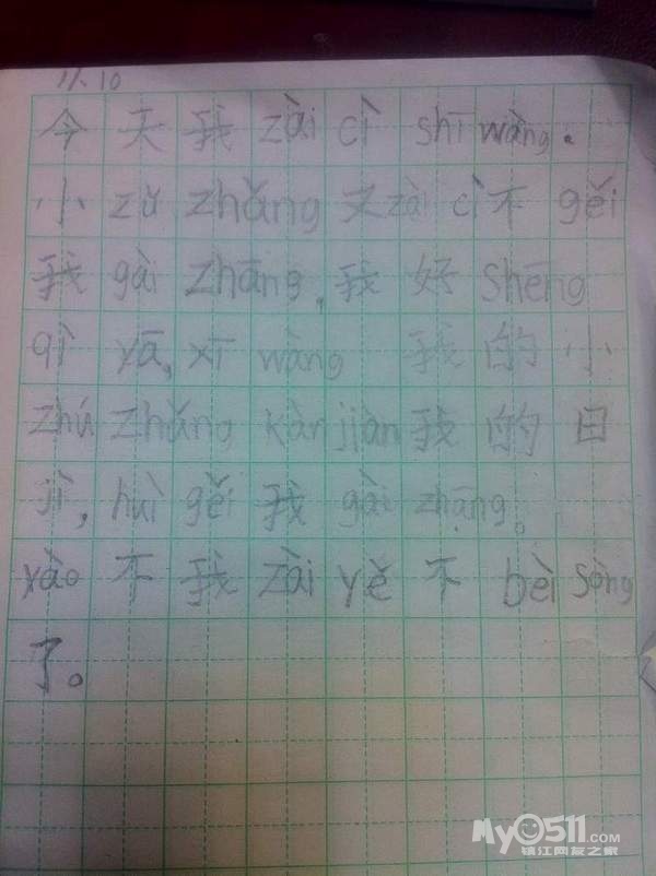 下午要去钢琴课还课,这次是有个节日,钢琴老师给了19首,所以我担心她下午累,就让她休息一下的。但在学校一个多月经历了四次考试后,她有了很大的灵感,我昨天就发现她在一张白纸上不停地写啊写啊,我以为她订正那个题目。但今天早上大大出乎我的意外。她拿着那张写满的字的纸给他爸爸,命令他爸爸必须考试了。这个是文文首次个人首张出的考试试题。请各位欣赏一下,最后在她的逼迫下,他爸爸最后答题的分数是90分。博文非常得意地说了一句:“他太差了,连那么简单的大小排列都粗心了,哎!."
