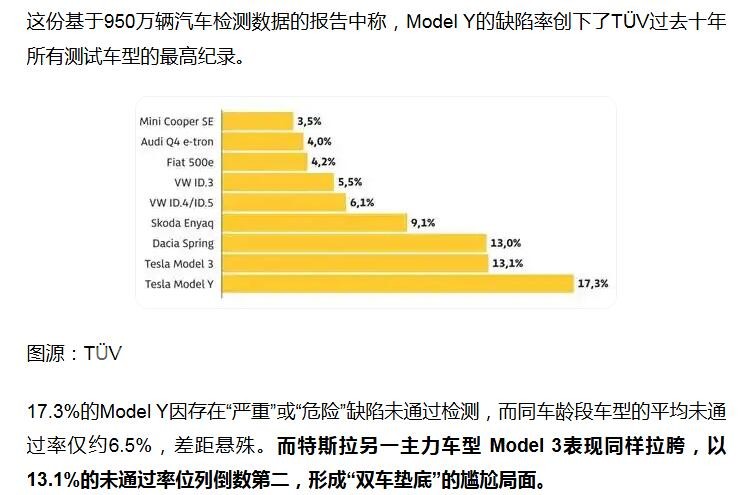全德汽车俱乐部(ADAC)最新发布的2026年TÜV报告显示,110款车型中,特斯拉这两款车的故障率遥遥领先,倒数第一。