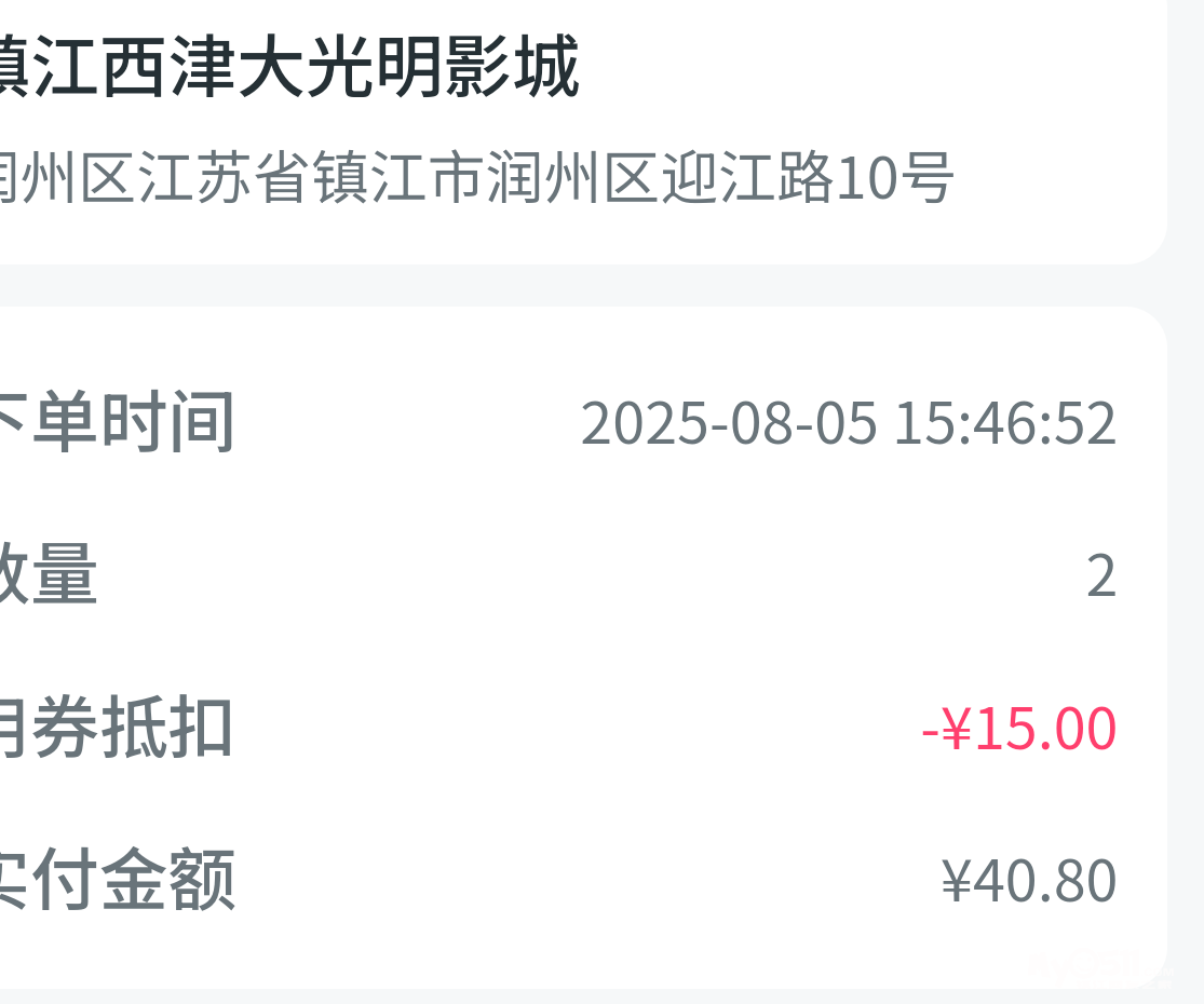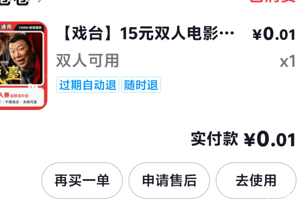 一分钱在抖音上买15的抵用券,然后去使用,找了家最便宜的影院,买了两张《戏台》,40块钱。
