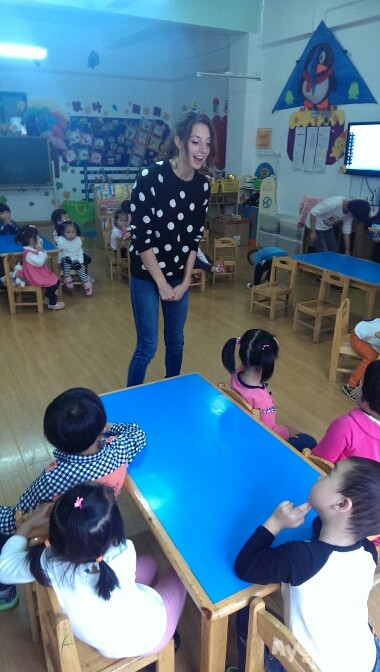 蒋老师在负责补抓孩子们上课精彩的瞬间。外教叫rose