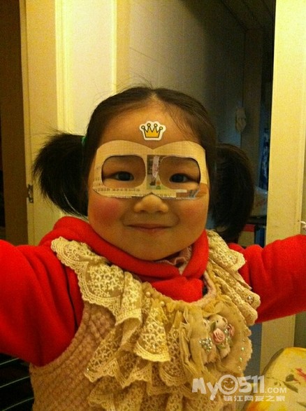 嘟嘟老是说要做大侠,给她用画报剪了个面具贴在脸上,还真高兴!