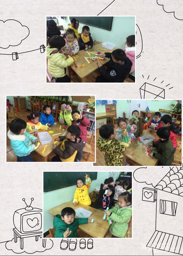 1.能用双手交替的方法将彩色纸撕成长条、大小块。