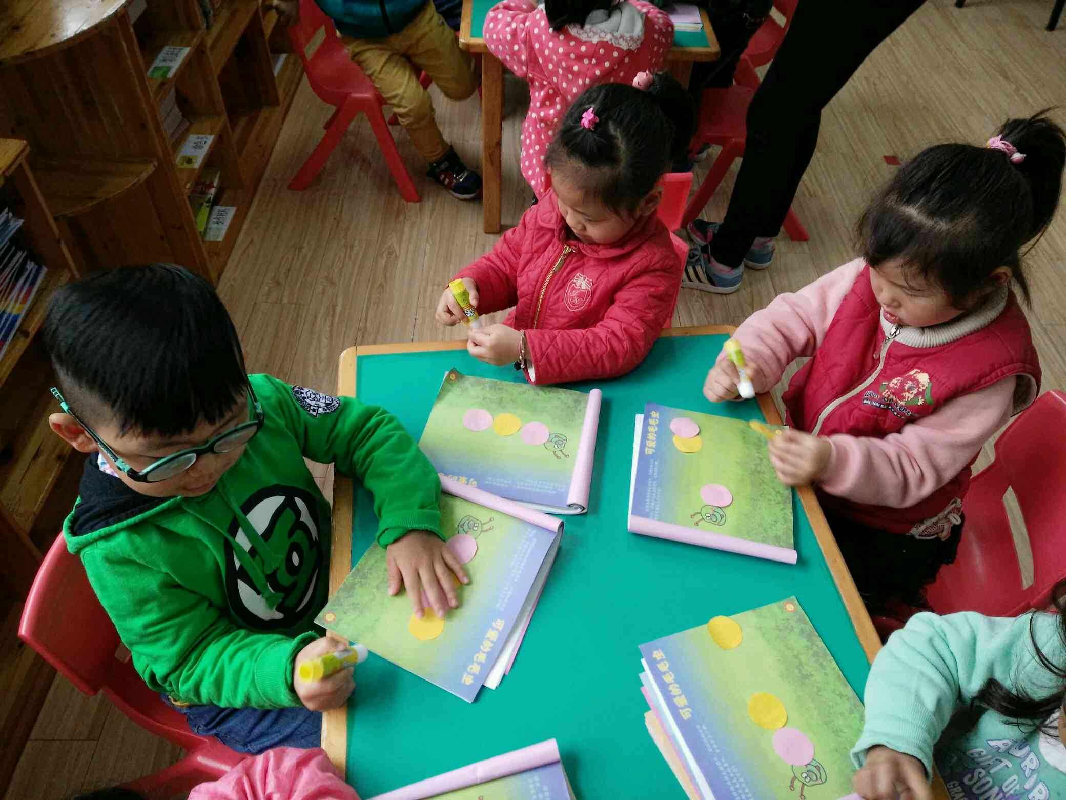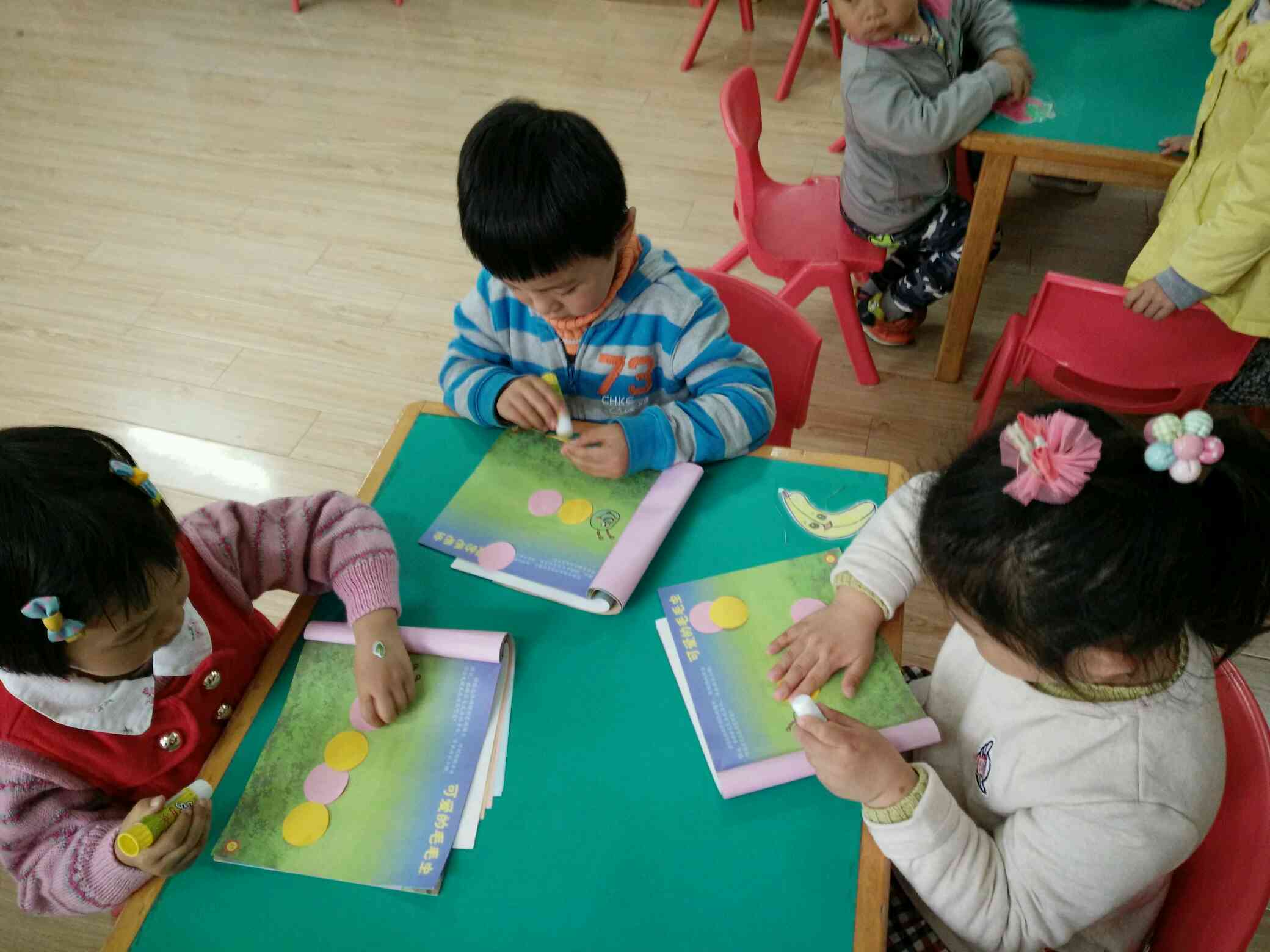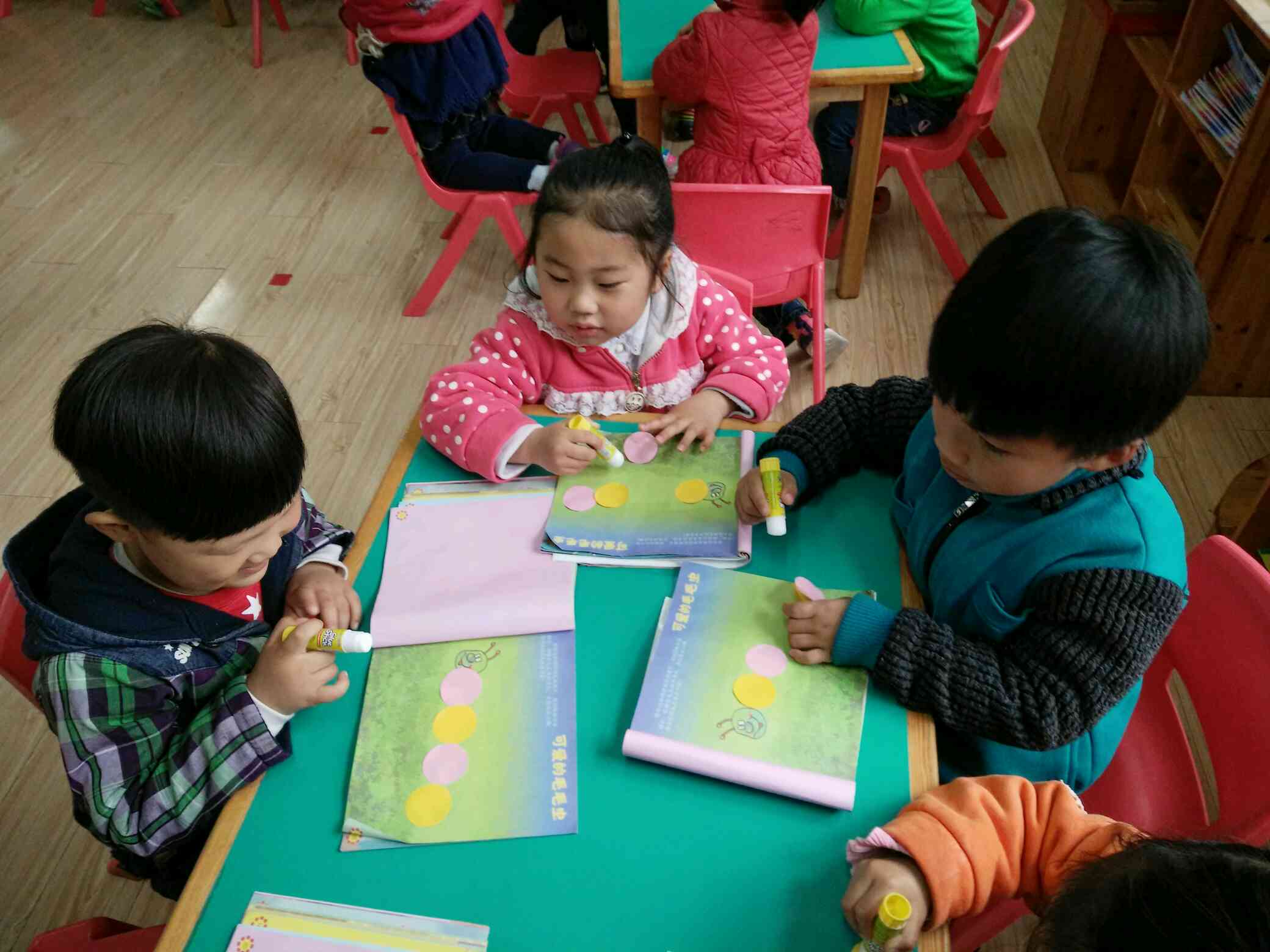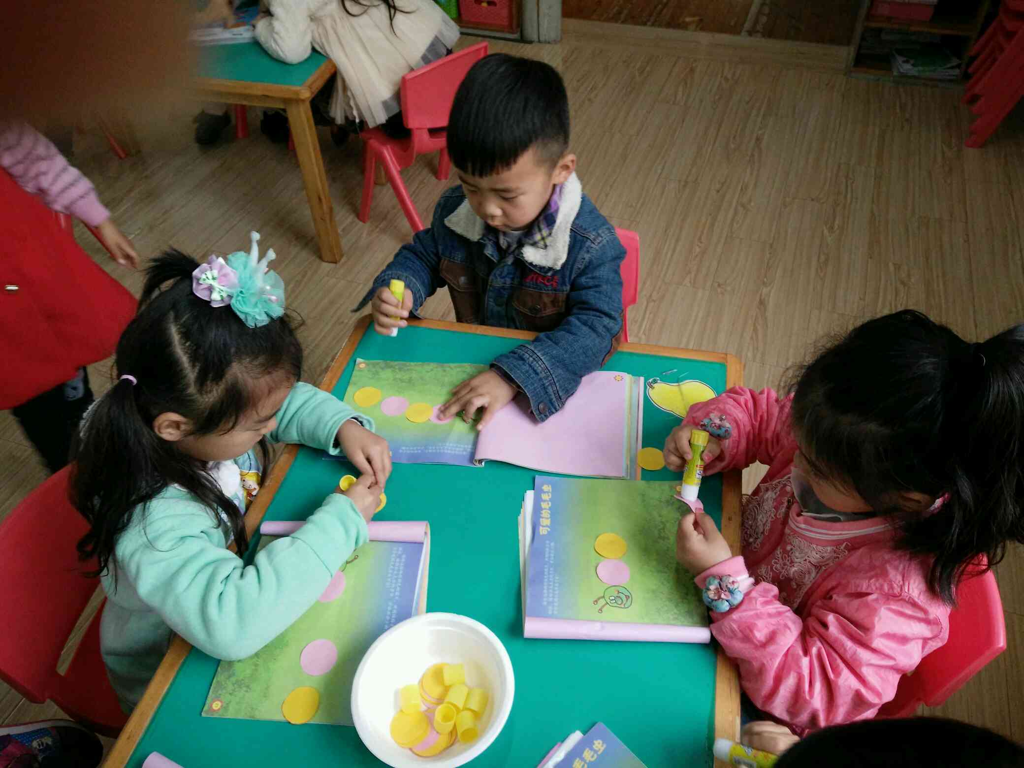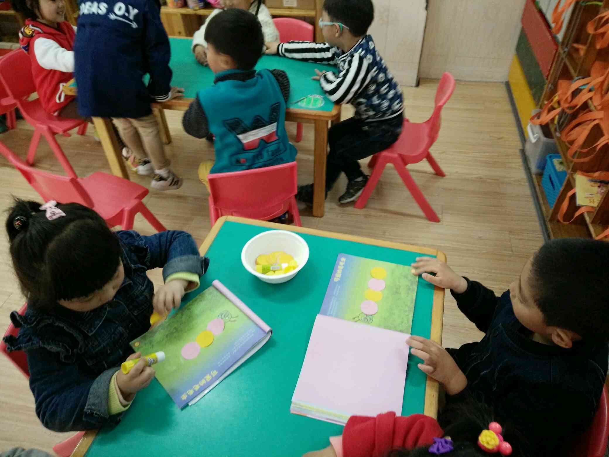 用圆片片粘贴身体,一只可爱的毛毛虫就好了!