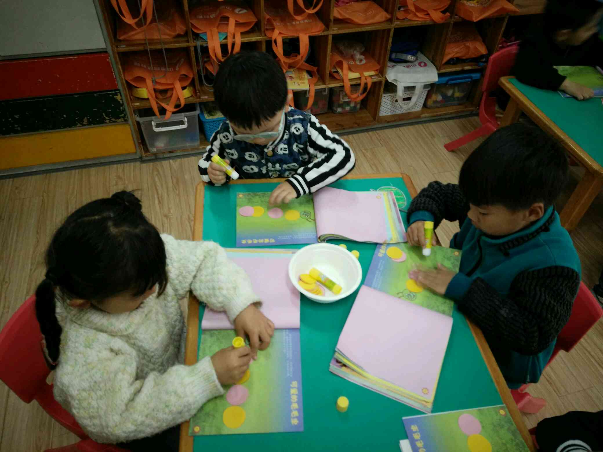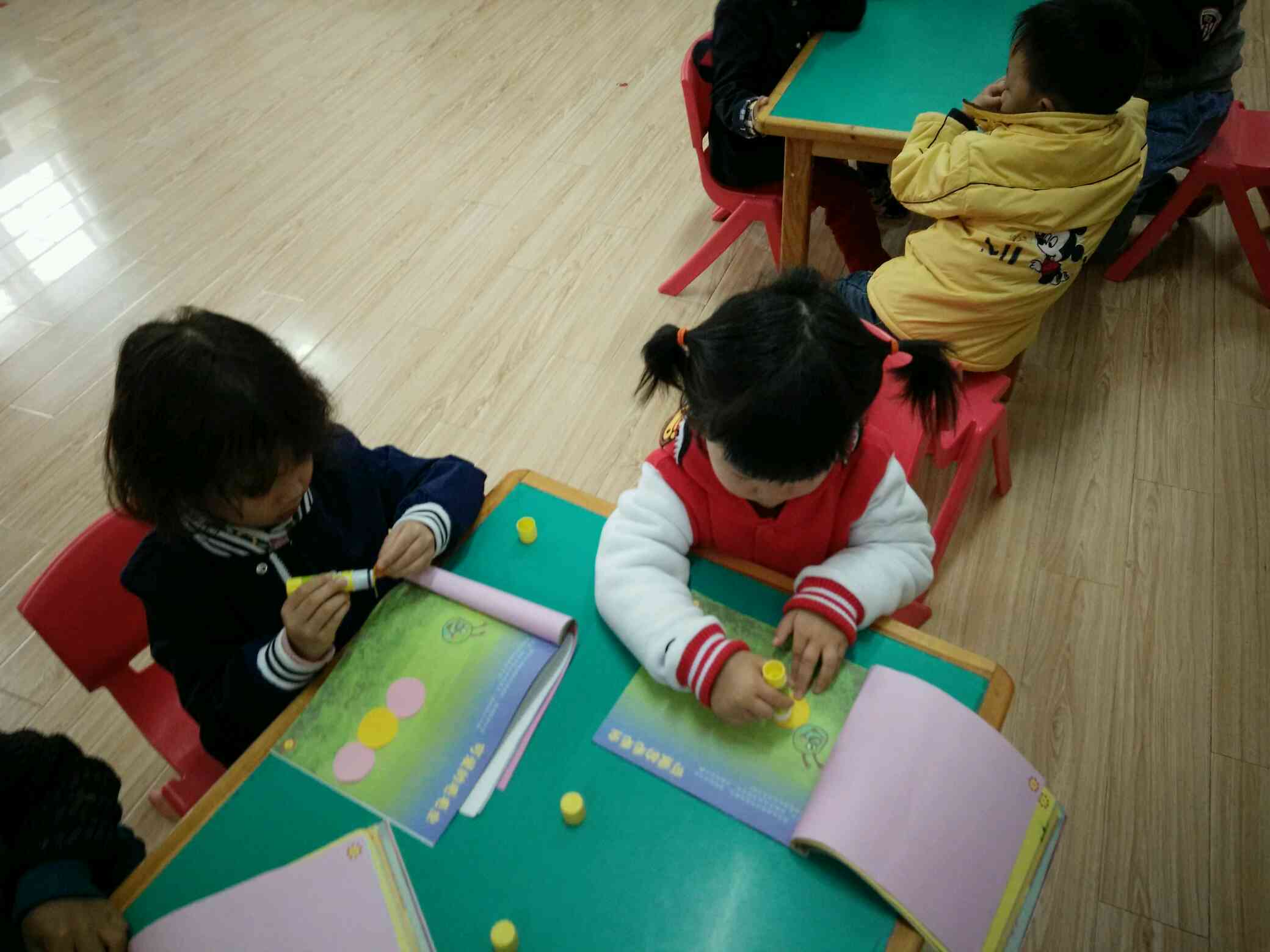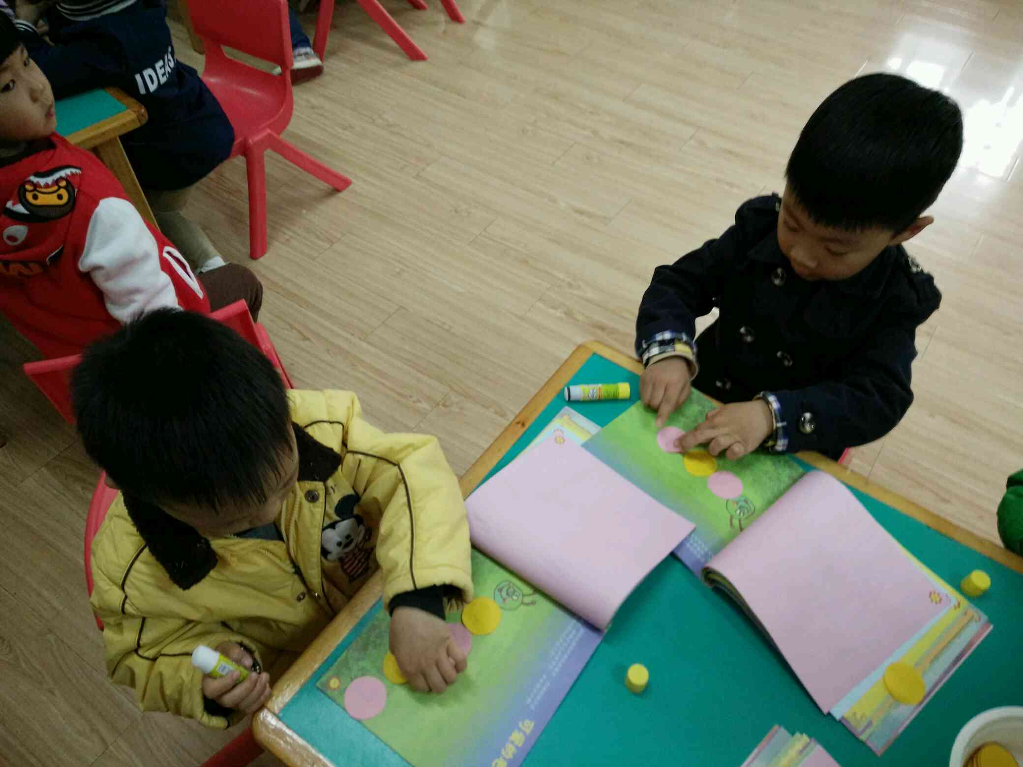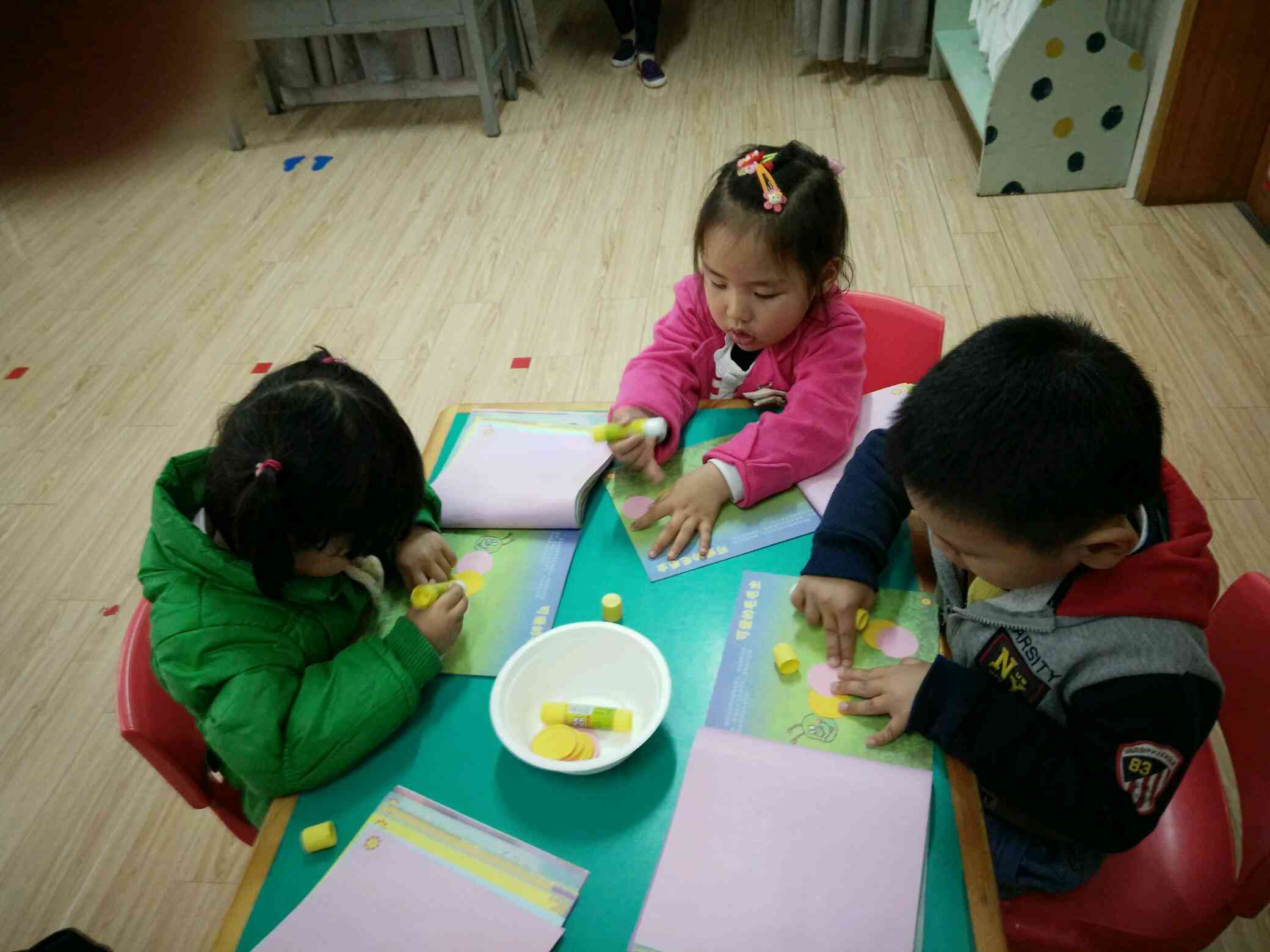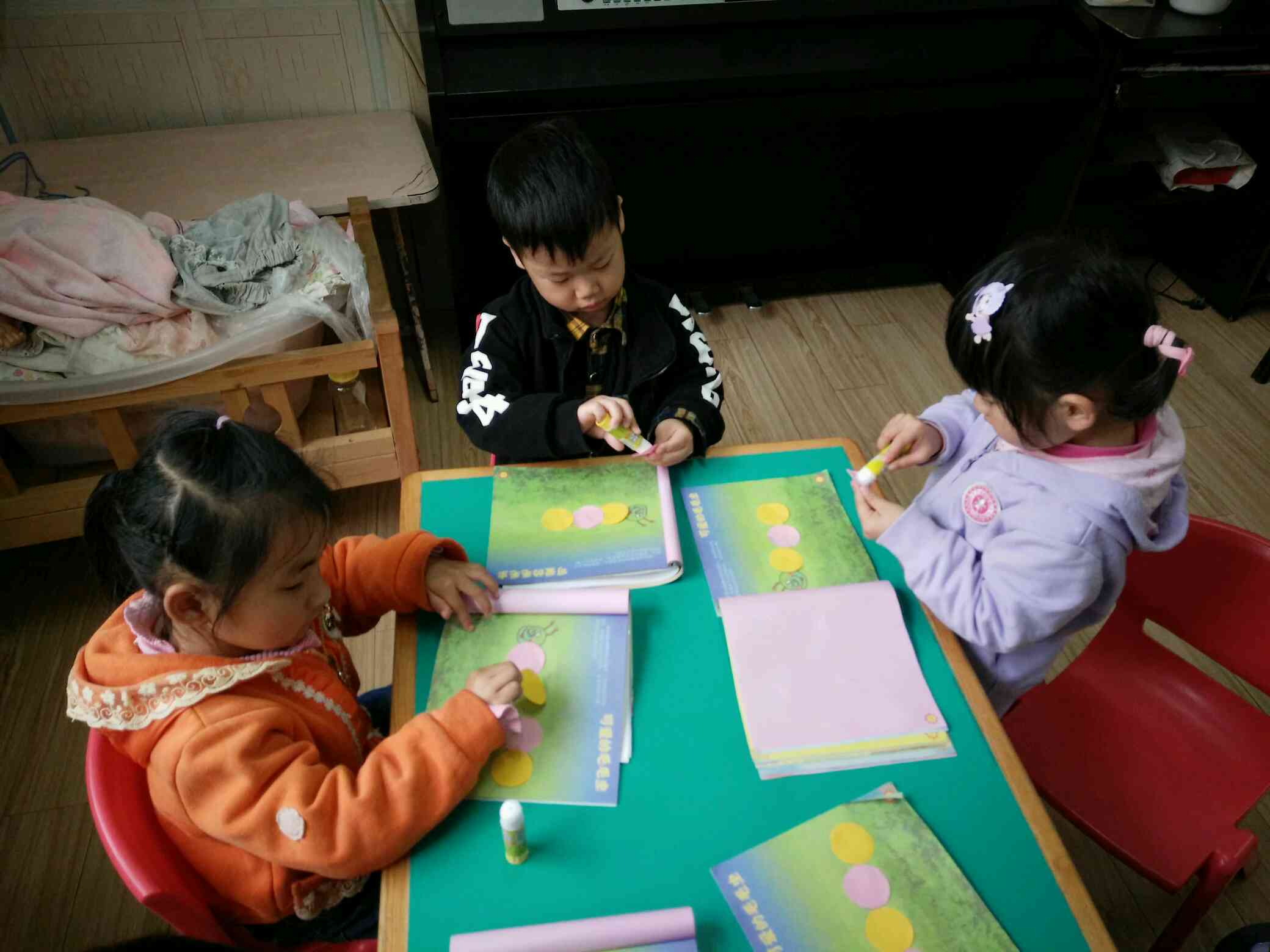 用圆片片粘贴身体,一只可爱的毛毛虫就好了!