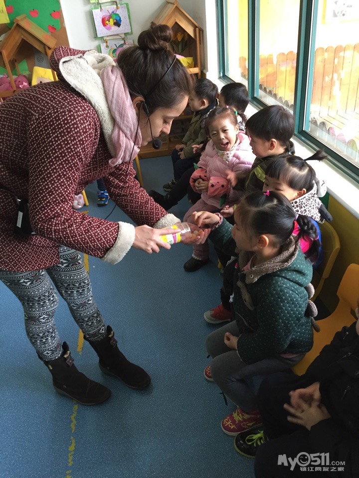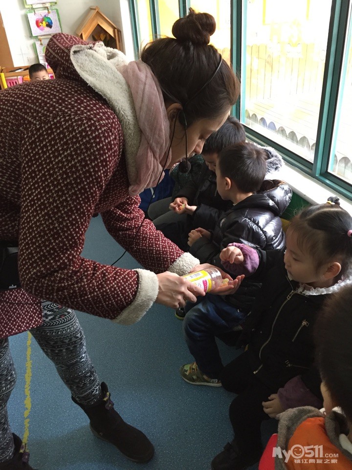 上完课,外教老师给我们每个人吃糖呢。