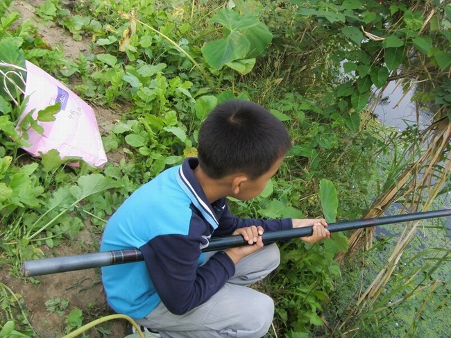 到了姨奶奶家,我都没有歇一会儿,就迫不及待地试了下鱼杆,鱼杆好长呀,还是升缩的呢!