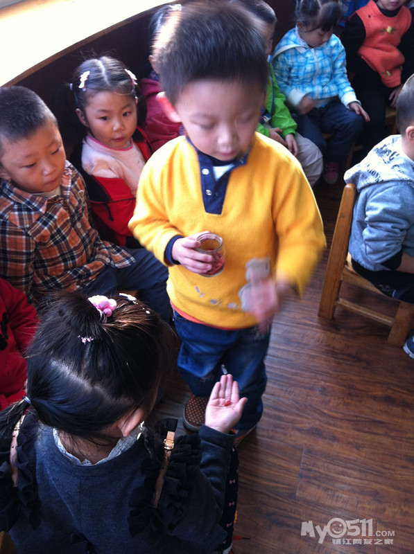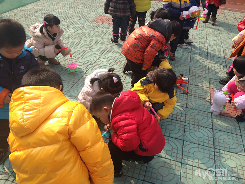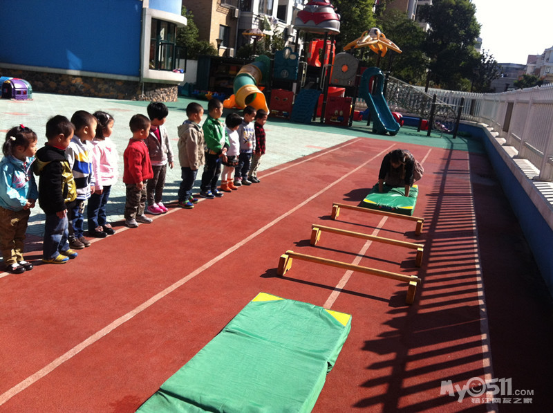 参加人员按班级分为四组 每组家长和幼儿分为甲乙两队 分别在8米外面对面站好 小孩身套呼啦圈 听到口令后每组第一个小朋友迅速拎着呼啦圈走到对面的家长处 接到家长拉着孩子身上的呼啦圈立即跟着孩子往回跑 把呼啦圈交给下一个孩子 以此类推 直到最后一个家长跑回起点为止