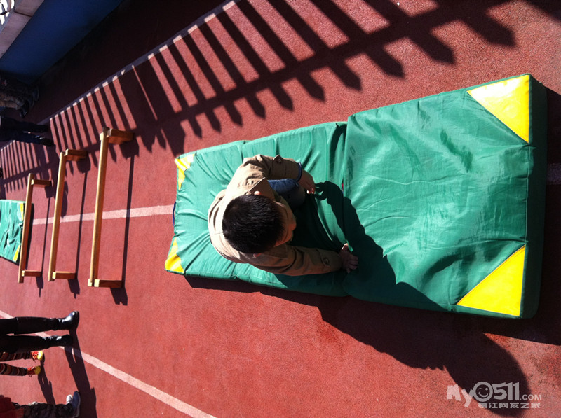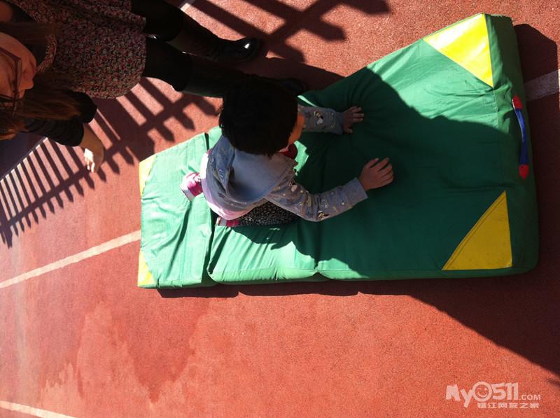 爸爸双脚夹沙包在起点准备 听到口令 立即夹着沙包跳过六个圈 然后来到孩子所在位置 孩子趴在垫子上等待 赶快把沙包放进孩子的小布兜里,孩子快速爬过垫子跑到妈妈那里 跑到规定的线上把沙包投到妈妈的小布兜里 妈妈拿着背篓去接孩子投来的沙包先接到的为胜