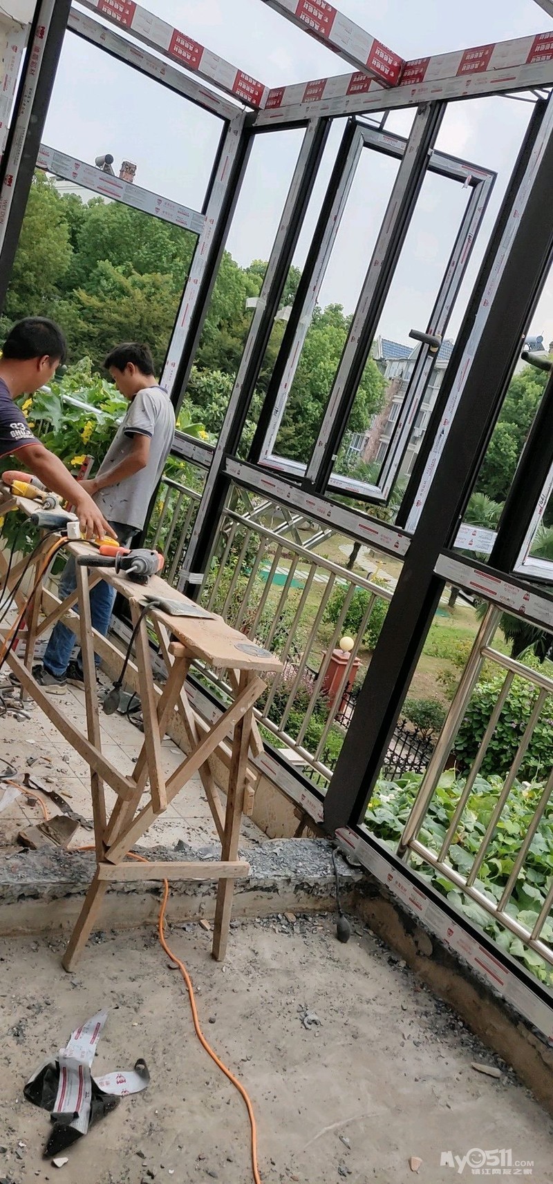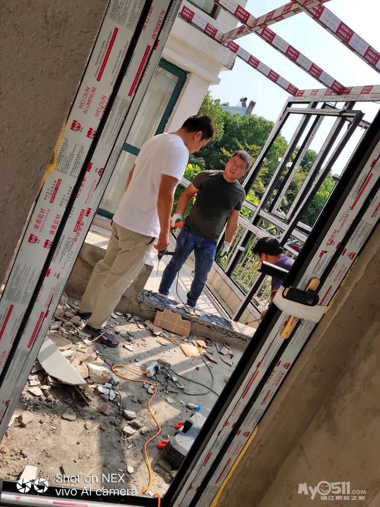 关于门窗,我有话要说。一开始从网友口中了解到伟昌,凤铝,维盾,好多别墅的朋友们都推荐我用维盾,说质量好不过价格也很好,维盾红星美凯龙有一个总代理,当时和老公去了维盾红星店,店员美女很热情的介绍,然后老板娘知道我们是0511网友也很热情,颜色门把手款式我都很喜欢,不过考虑到价格超出预算很多,当时准备放弃,然后有一个叫家欣门窗的老板娘一直和我微信保持联系,他们家也有维盾做,于是我就和我老公去家欣看了下,家欣店面不算大,位于梦溪嘉苑附近,当时去看了一下,心里就像会不会是仿冒产品,看完我就回家了,不过价格还是很有诱惑力的。于是我微信和老板娘聊天,问他你既然能拿到维盾的型材,那维盾的门把手你能不能配到?我当时心里想型材造假容易,门把手不太容易,然后老板娘说可以,还发来了多照片,第二天我又和老公来到老板娘店里,详谈一番后老板娘把我带到她们仓库又看了下实物,基本我就放心了,老公说没看出毛病,应该不会假,加上老板娘和我大概微信也聊了好几个月,也被他的坚持所感动,一个女人带三个孩子很不容易,还把生意做得风风火火的,所以我选择相信家欣!这是我定东西最快最果断的一次!看完样品我就交了定金!今天已经装好外框了,给大家看看细节图