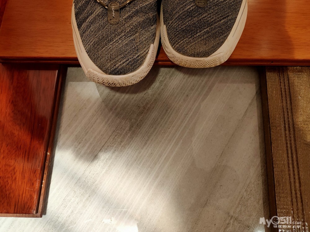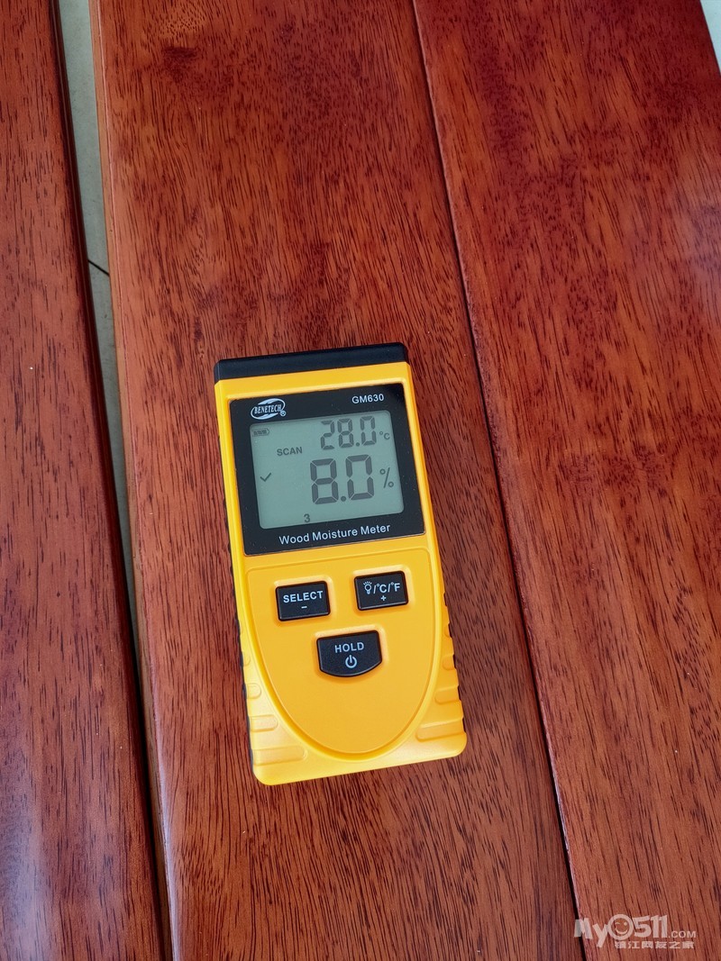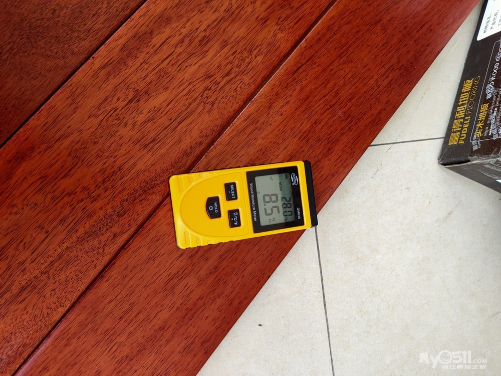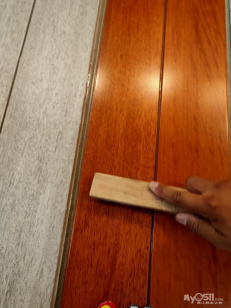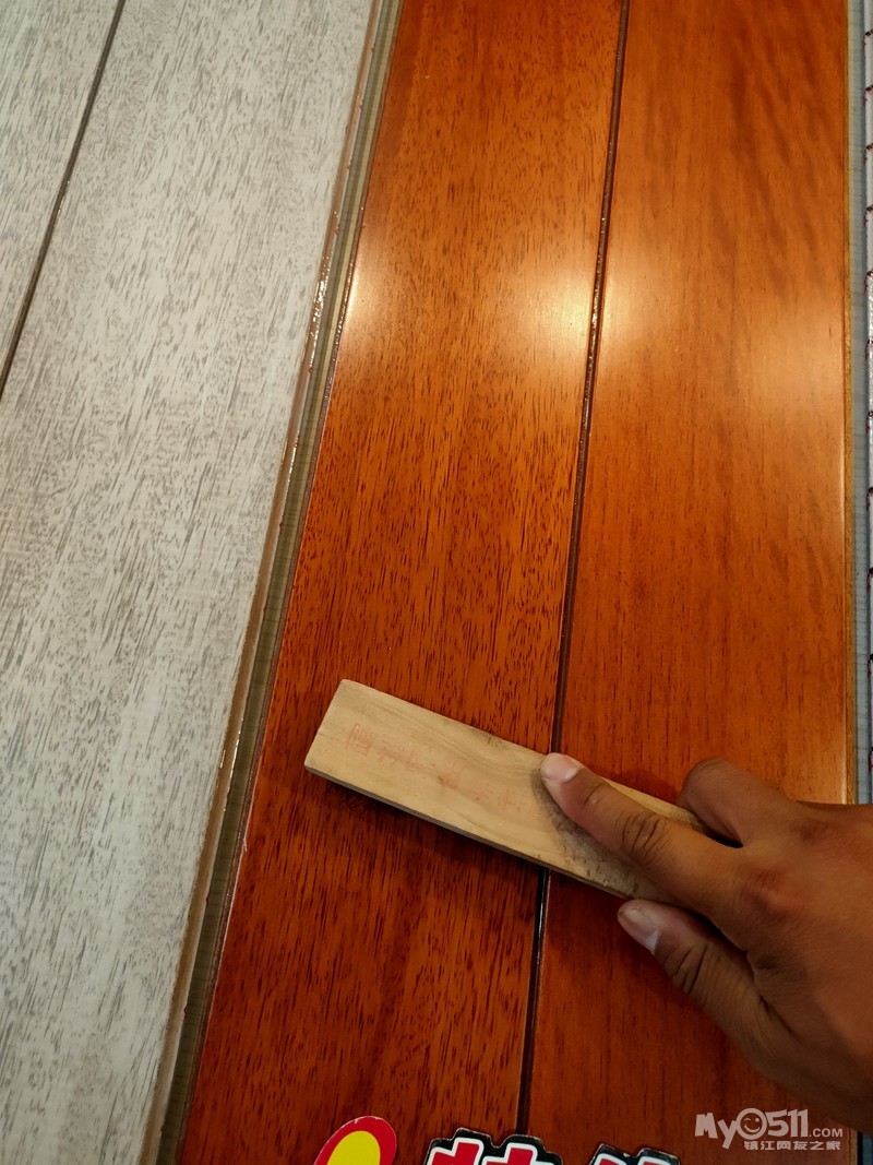 地板的抗剪力也是重要指标之一,如果抗剪力不够,容易发生断裂。本人150斤体重,现场踩在架空的一块木地板上,实测几乎没有什么形变,抗剪力还是不错的。注意,我拿的是番龙眼木地板。