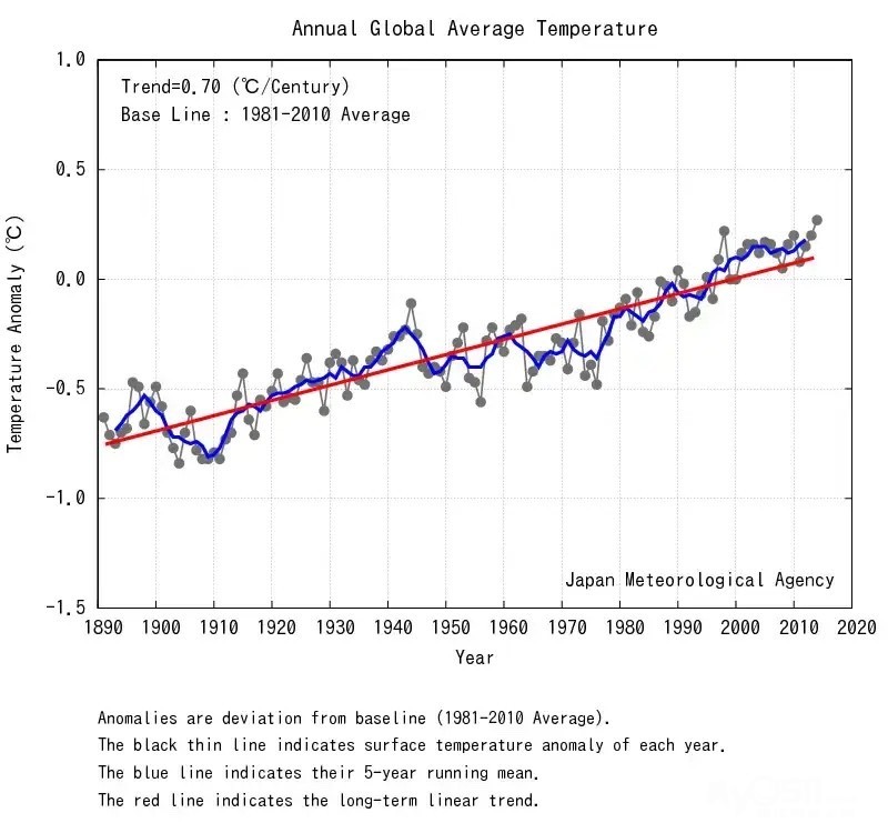 这个是全球130多年的平均气温变化