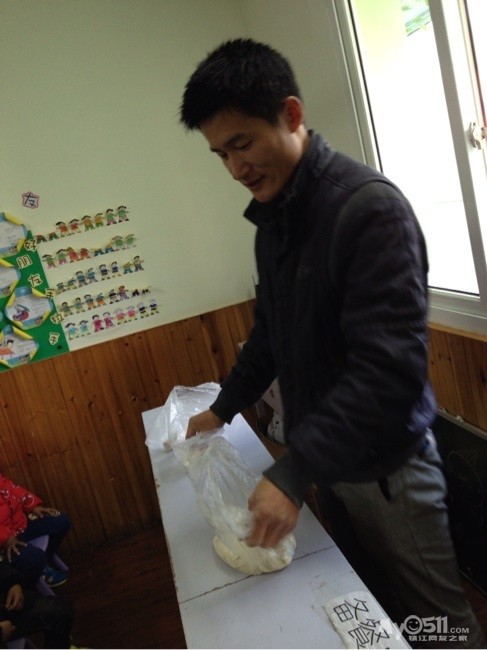 孩子们用橡皮泥和叔叔一起学学做面点