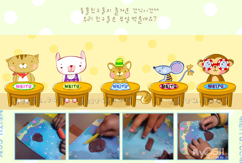 今天陈弘恺回家讲了《水果屋》的故事。又和妈妈一起复习了以前学过的英语,最后阅读了故事《小猪拔牙》。在讲到故事中的相关语句,比如猫医生叫小猪张开嘴巴时,就用英文“open your mouth"来代替中文,在故事中学英语!