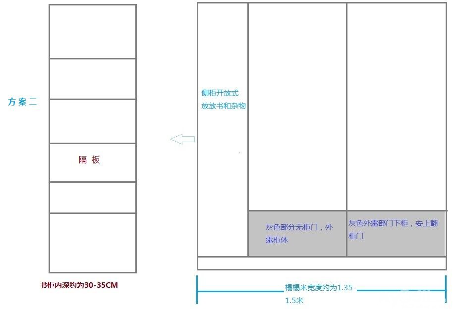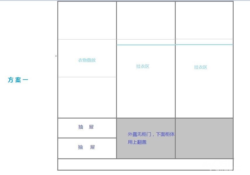 把他们的结合一下,自己画了个草图,靠墙的衣柜想了两个方案,最终二选一吧