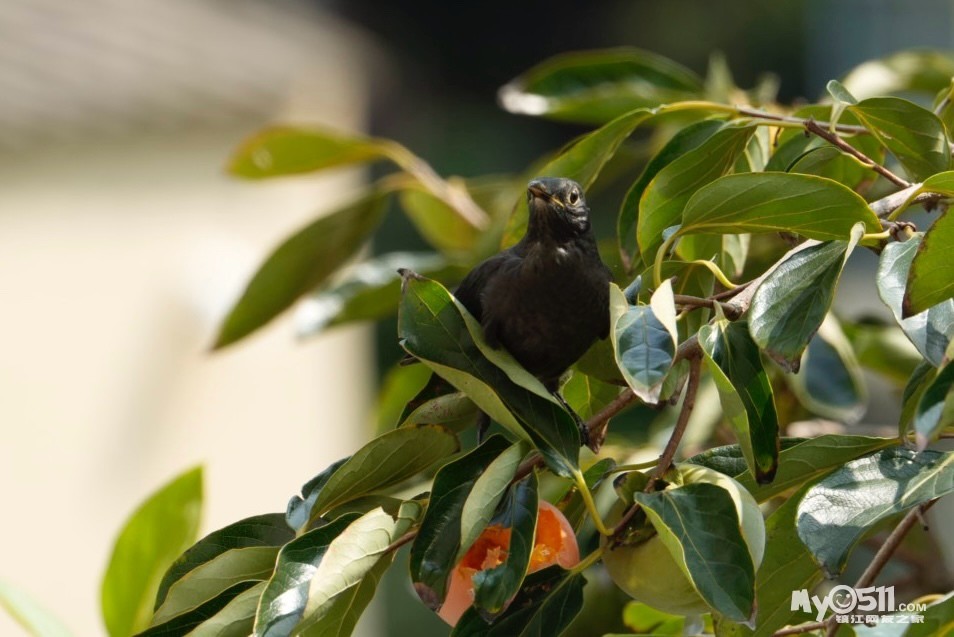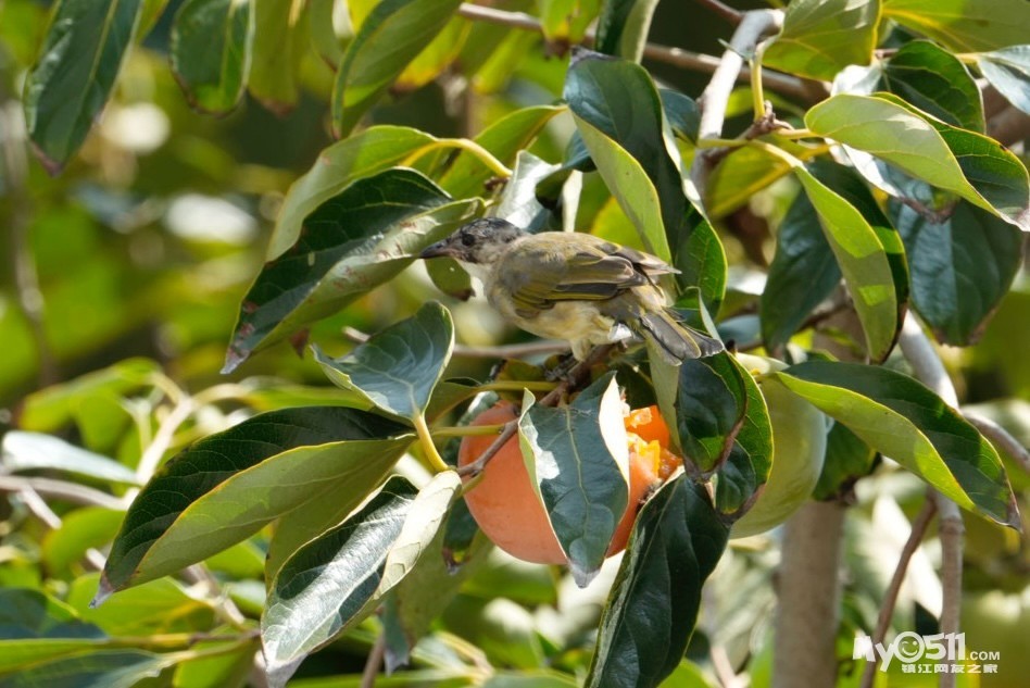 昨天去扬州回来晚,没关注柿子,今天一看有惊喜,树梢好处够不到的地方还留了不少,有新朋友关顾。乌鸫和白头鹎也来干饭了。