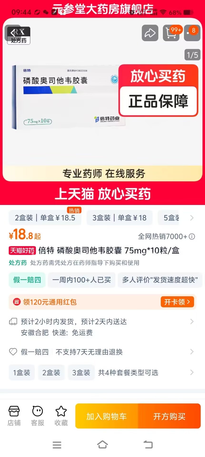 近段时间感冒流行,办公室几个人都感冒发烧了,同事说可以吃磷酸奥司他韦预防,在网上看了一下也就十几到二十几一盒,想着到药房可以快一点,就去了附近的汝山路的同仁堂药房,问了一下,倍特的磷酸奥司他韦成人75mg*10粒包装的,竟然要78一盒,针想知道他家的这个药使用什么做的,价格要贵出几倍。