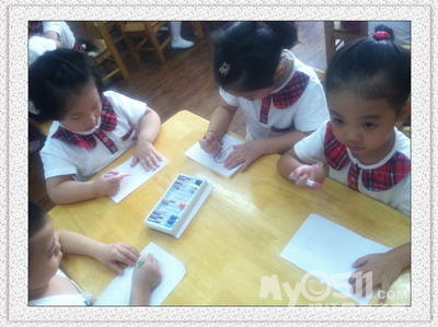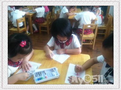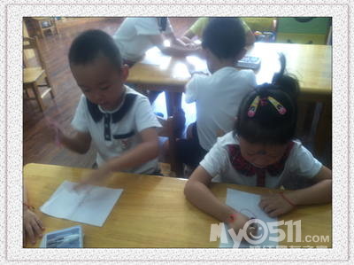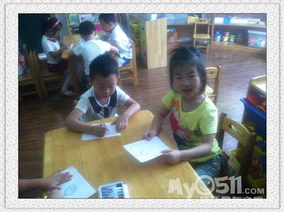 我们现在是中二班啦(妮妮班),教室在一楼最里面的教室!你能找到我们的教室吗?