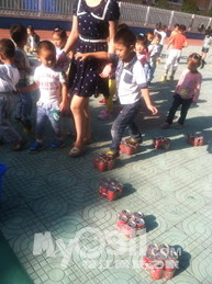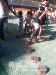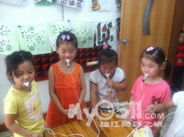 我们玩了吹泡泡,还玩了木头人。可开心了!