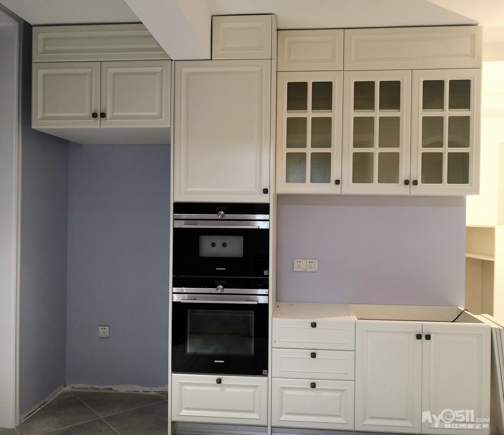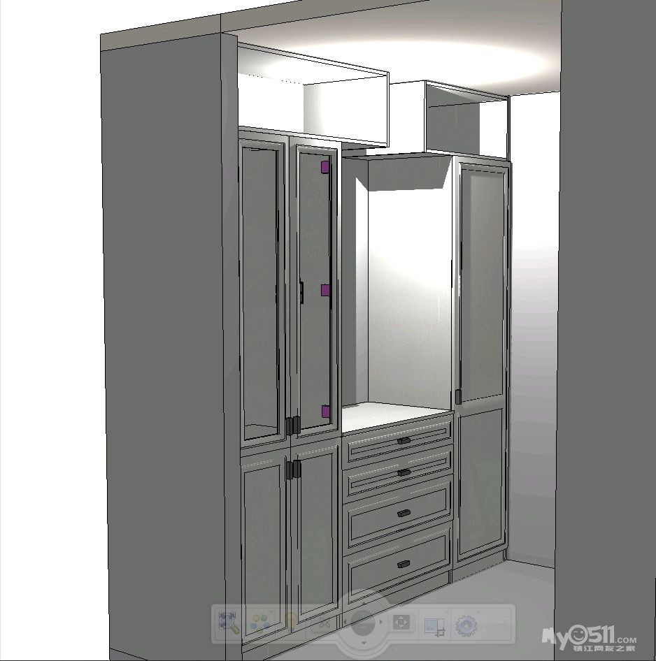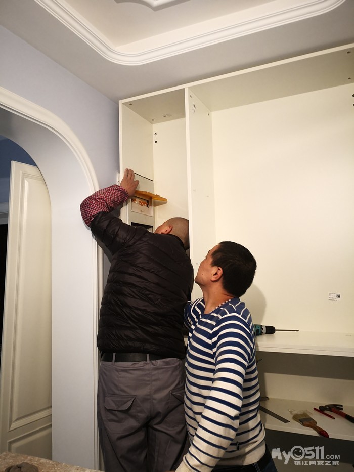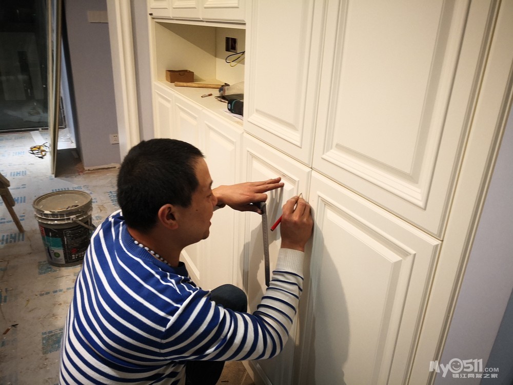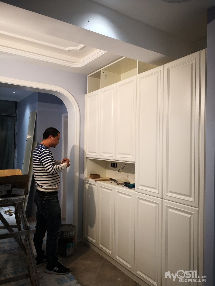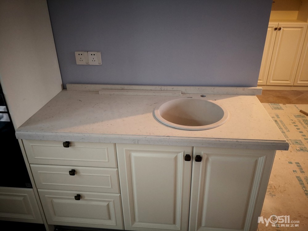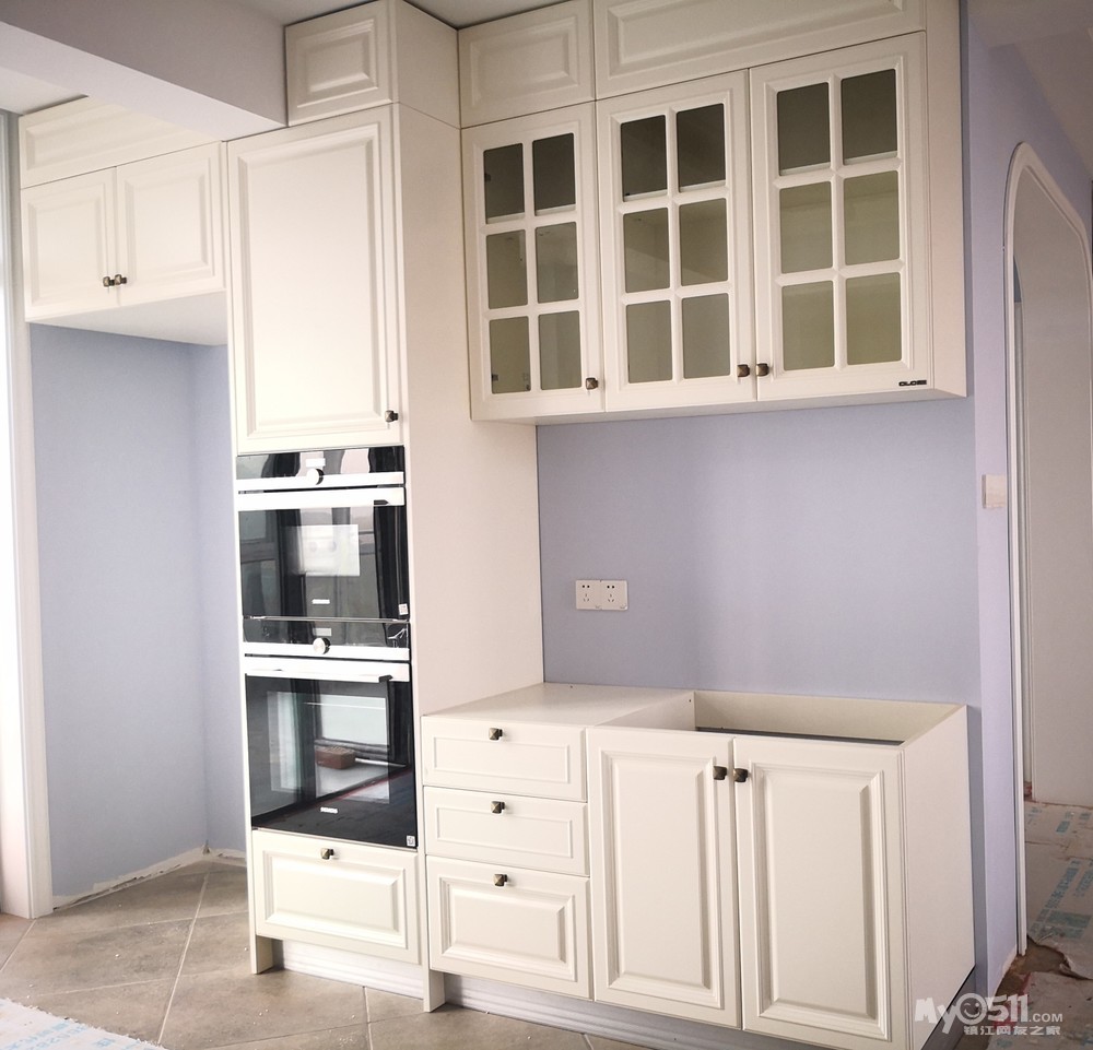 经过前期的上网查案例和与设计师的反复沟通,确定了两边抽屉和开门柜结合的方式,这样后期使用起来方便点。有关层板的位置,我认为上层十厘米下层三十厘米为佳,可以满足不同物品的摆放。