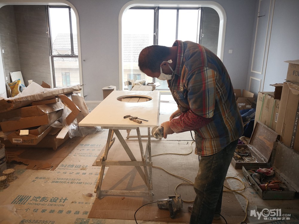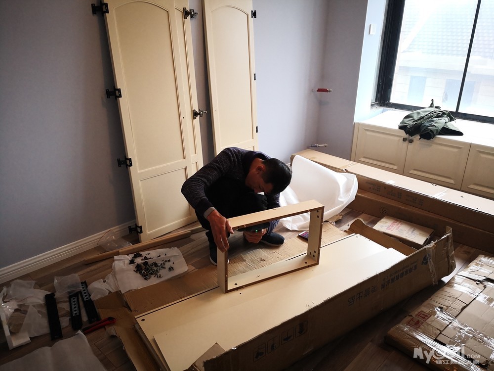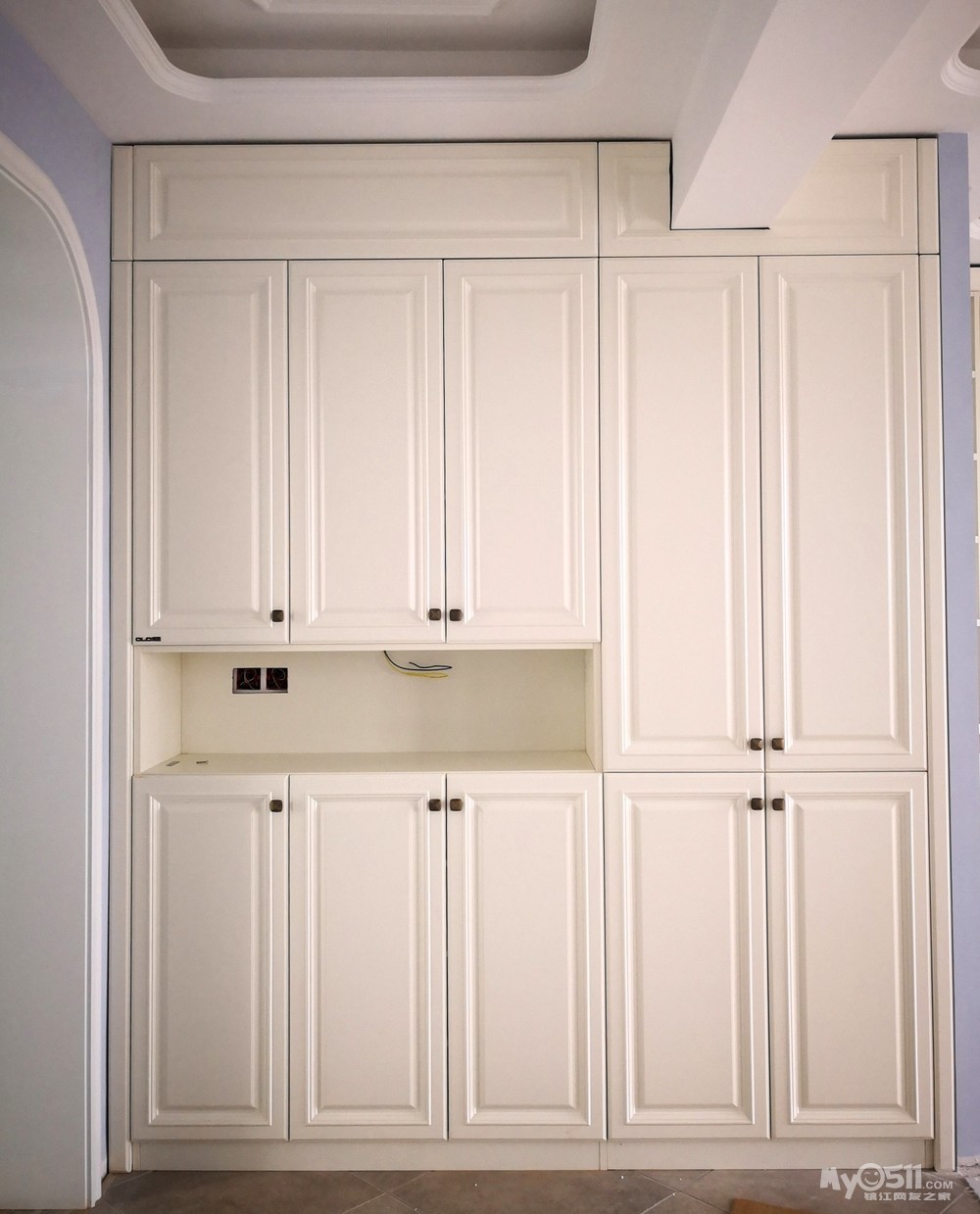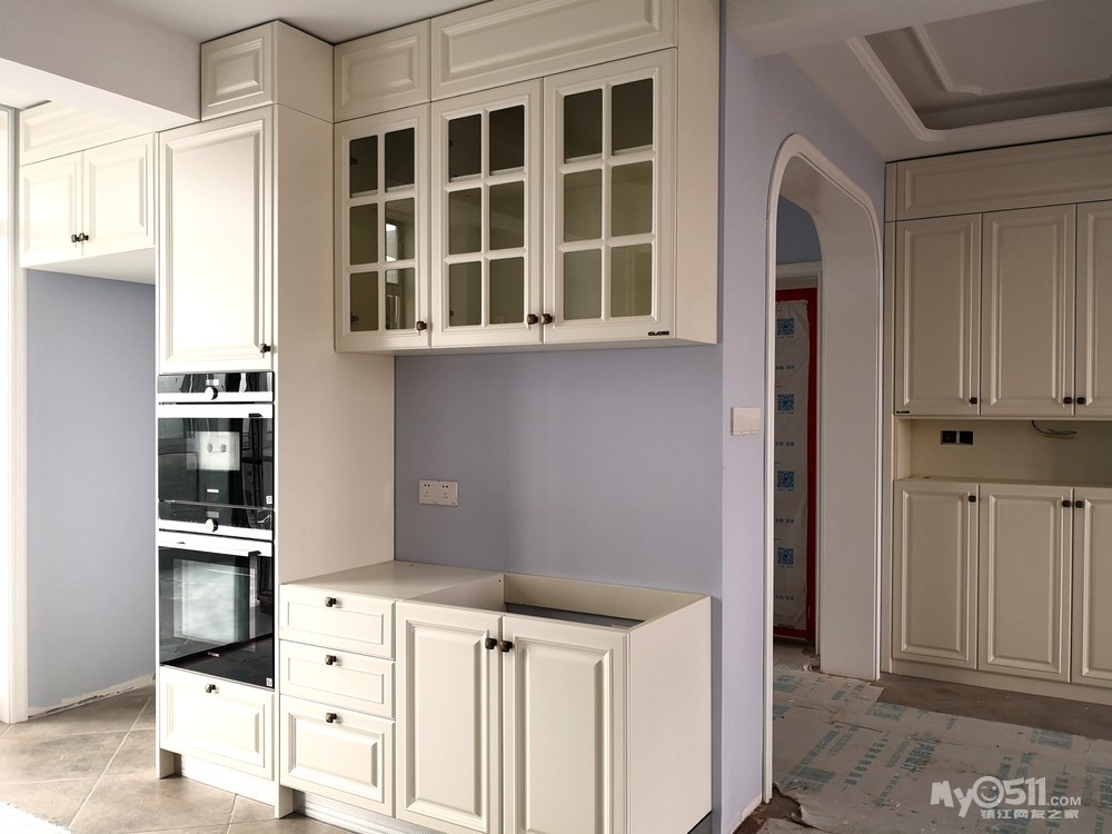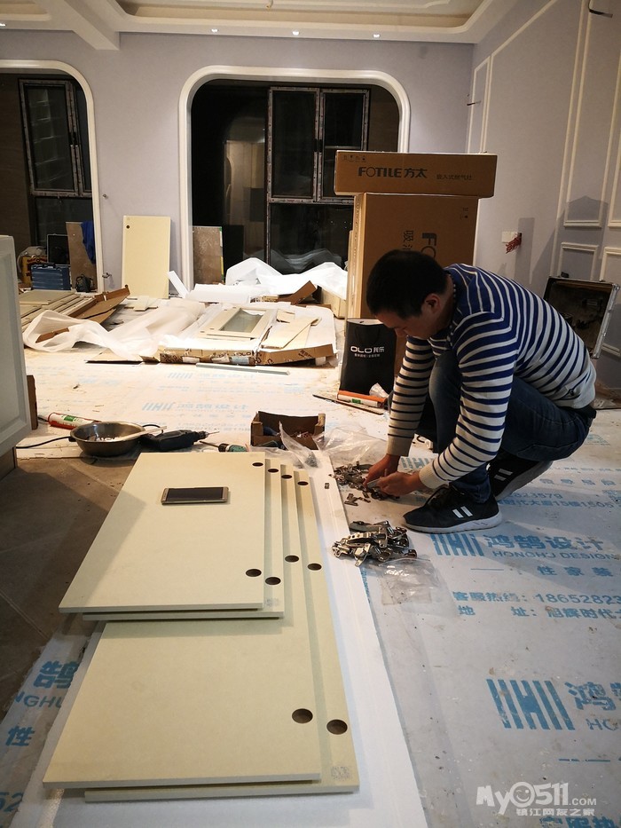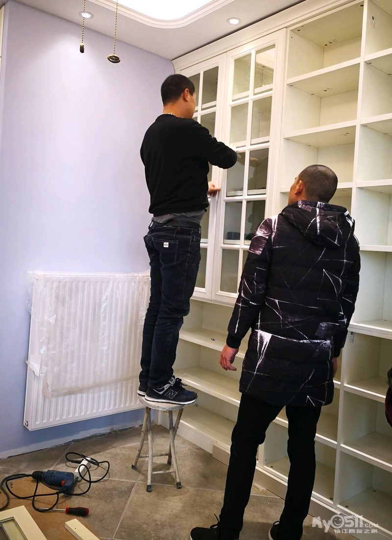 经过前期的上网查案例和与设计师的反复沟通,确定了两边抽屉和开门柜结合的方式,这样后期使用起来方便点。有关层板的位置,我认为上层十厘米下层三十厘米为佳,可以满足不同物品的摆放。