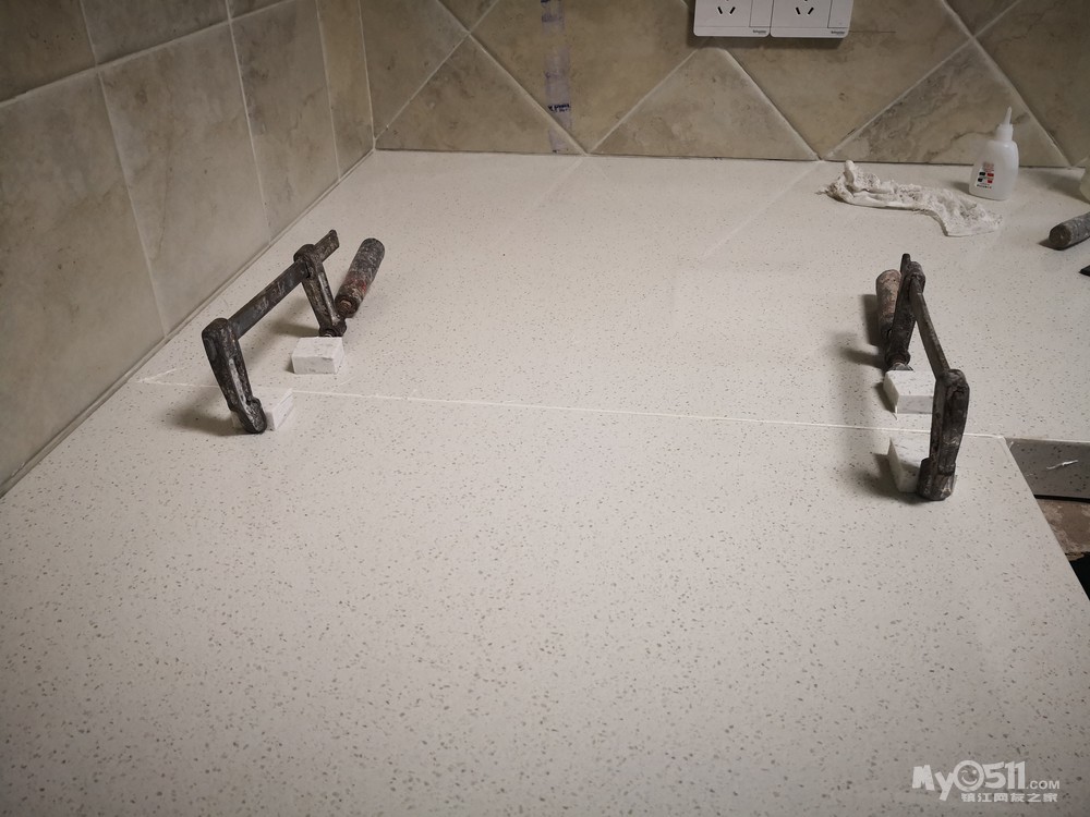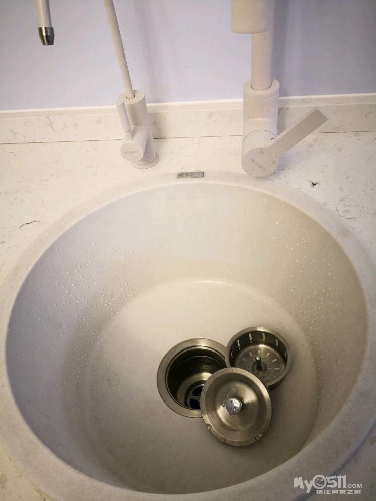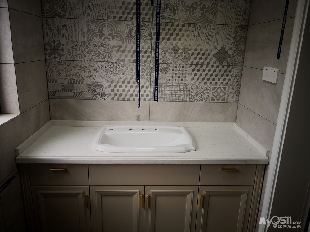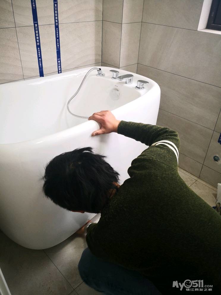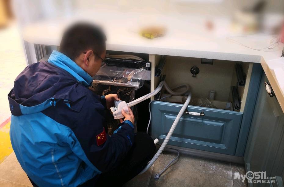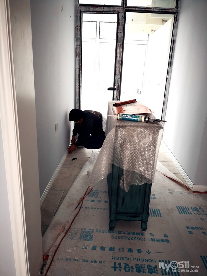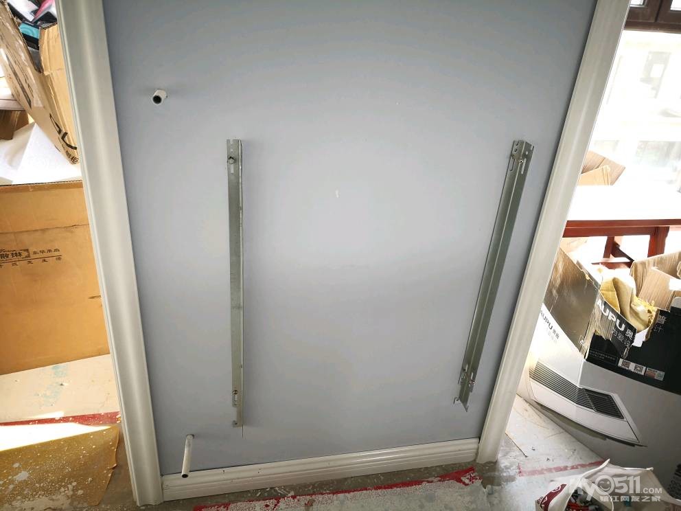 师傅先把下水管用弯头改到中间,然后安装两边的柜体。