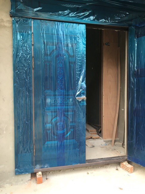 我们家铜门外框做好了,期待效果哦
