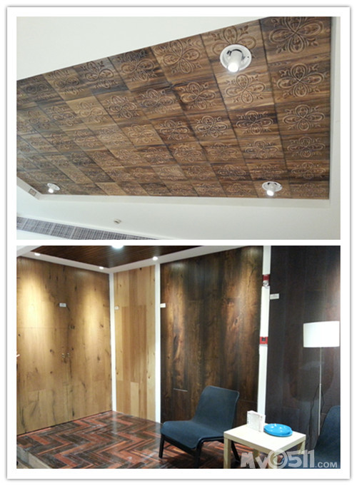 大家到我家 都问,这是什么顶,石膏板怎么有这样的纹路,我说是地板,才恍然大悟!真心夸不错!!!非常有创意,而且很漂亮,欧家这款地板真心不错 哈哈哈