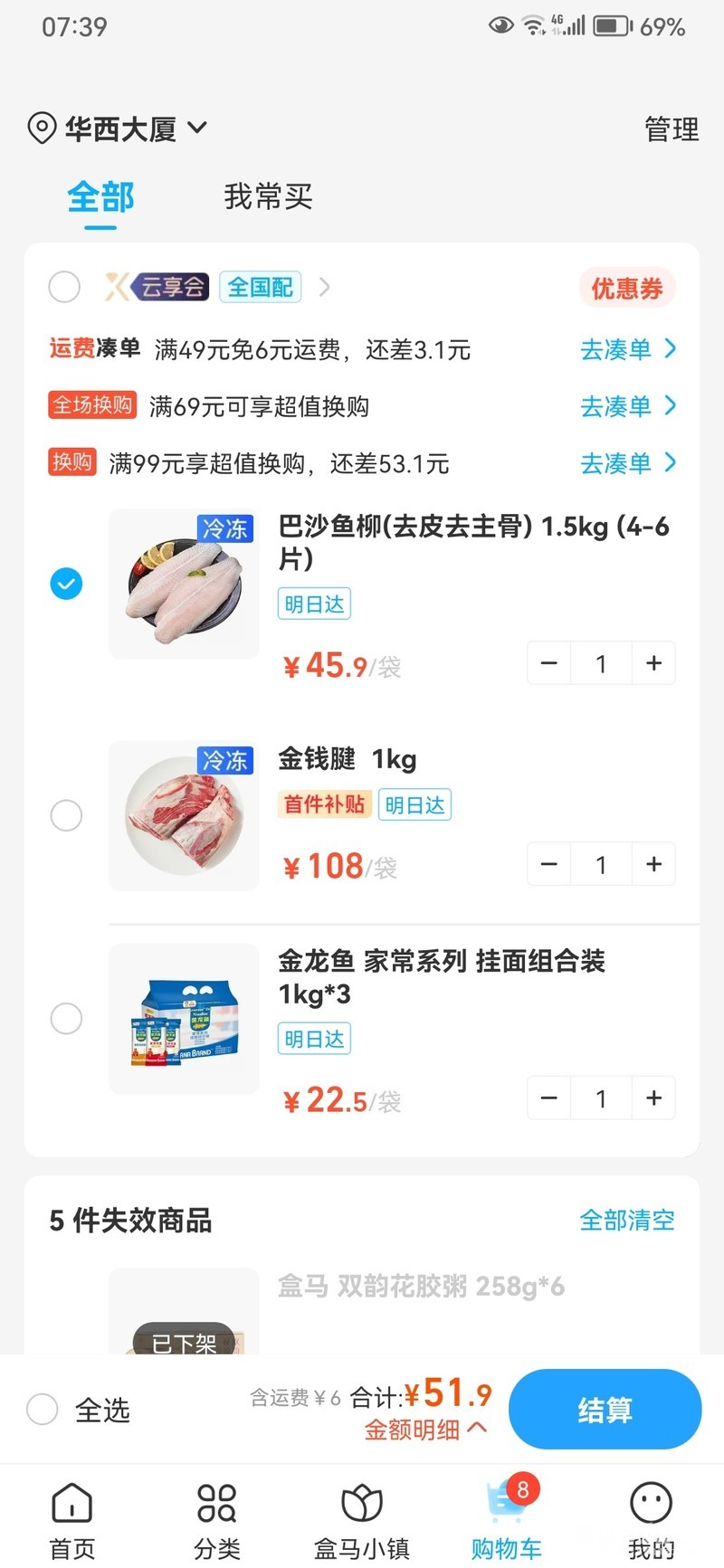 京东成交价38,盒马要50多。