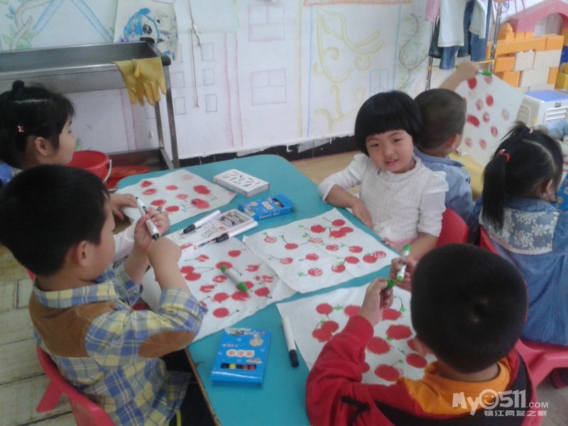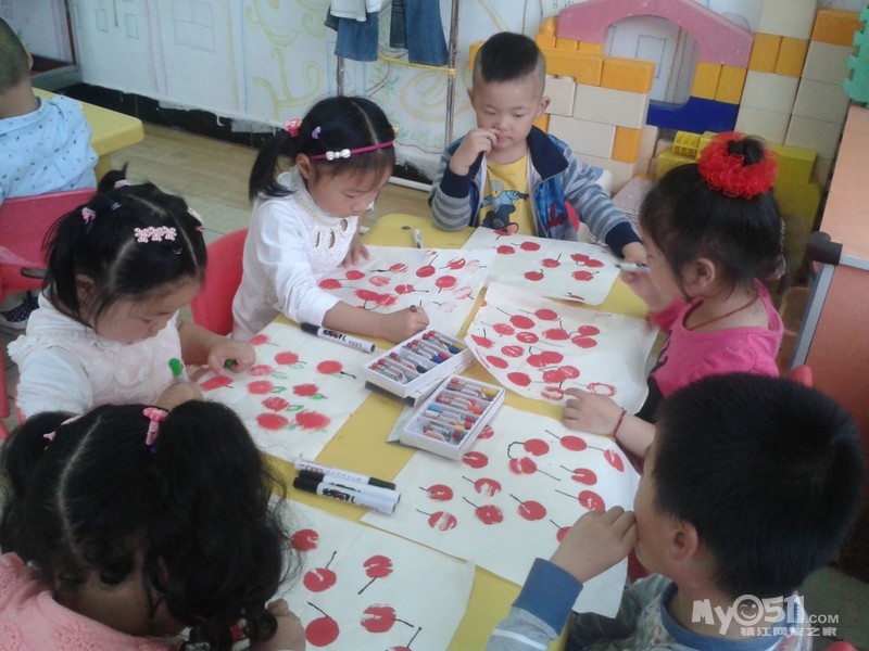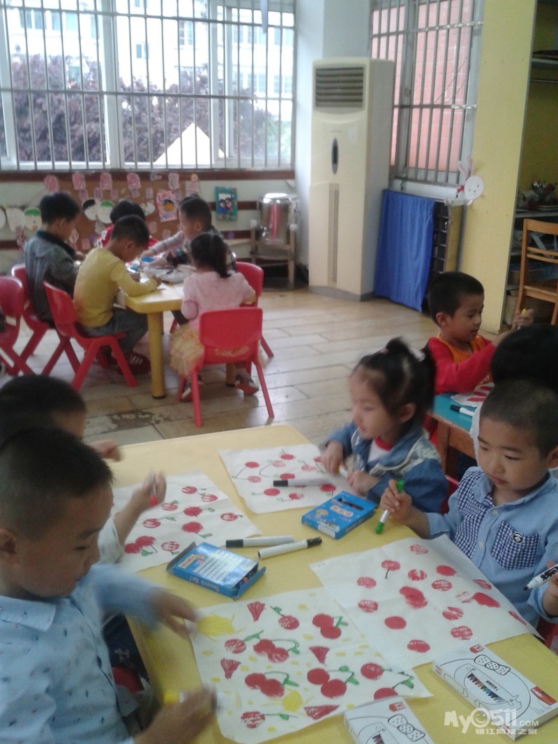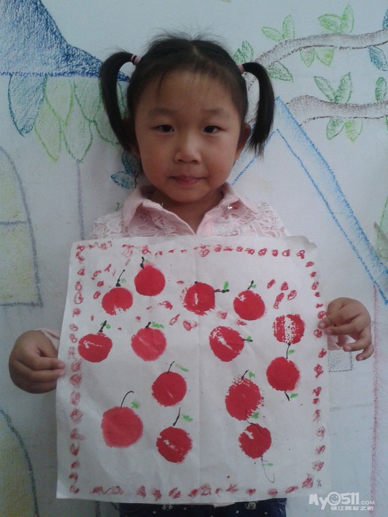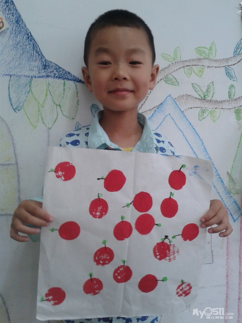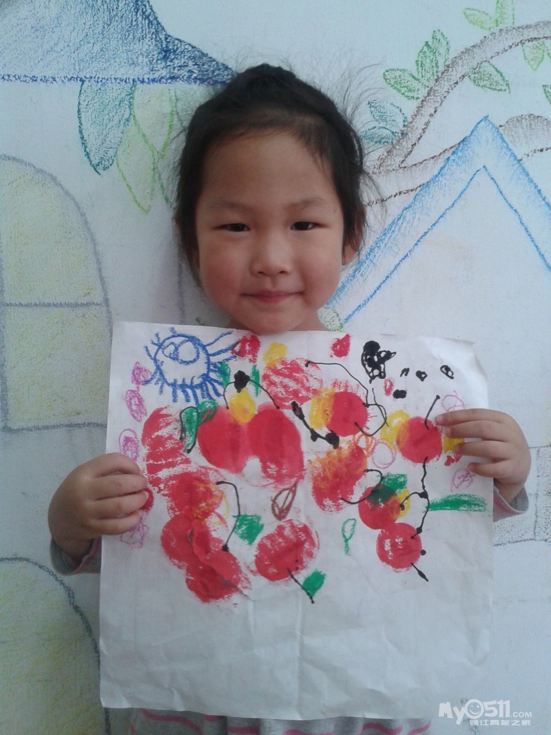 小朋友们画的可爱樱桃来喽。我们先拓印出红红的樱桃,然后再添上它的叶柄,用油画棒画上好看的小叶子,爱动脑筋的小朋友还添画了小圆点进行装饰,真是漂亮极了!