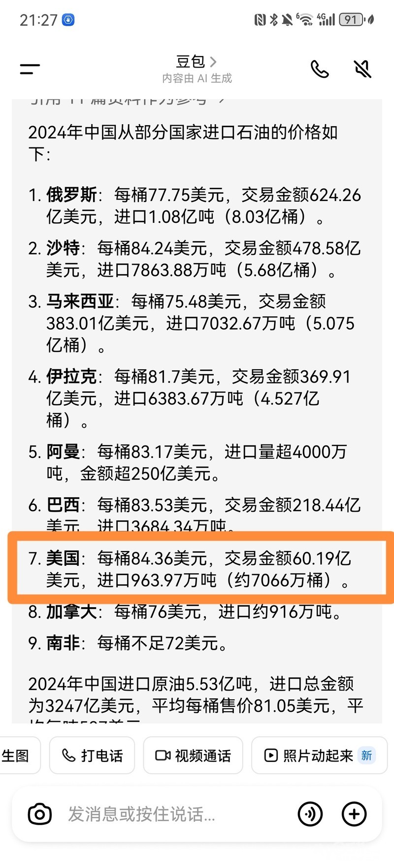 目前看,我们暂时没有从美国购买高价石油的计划