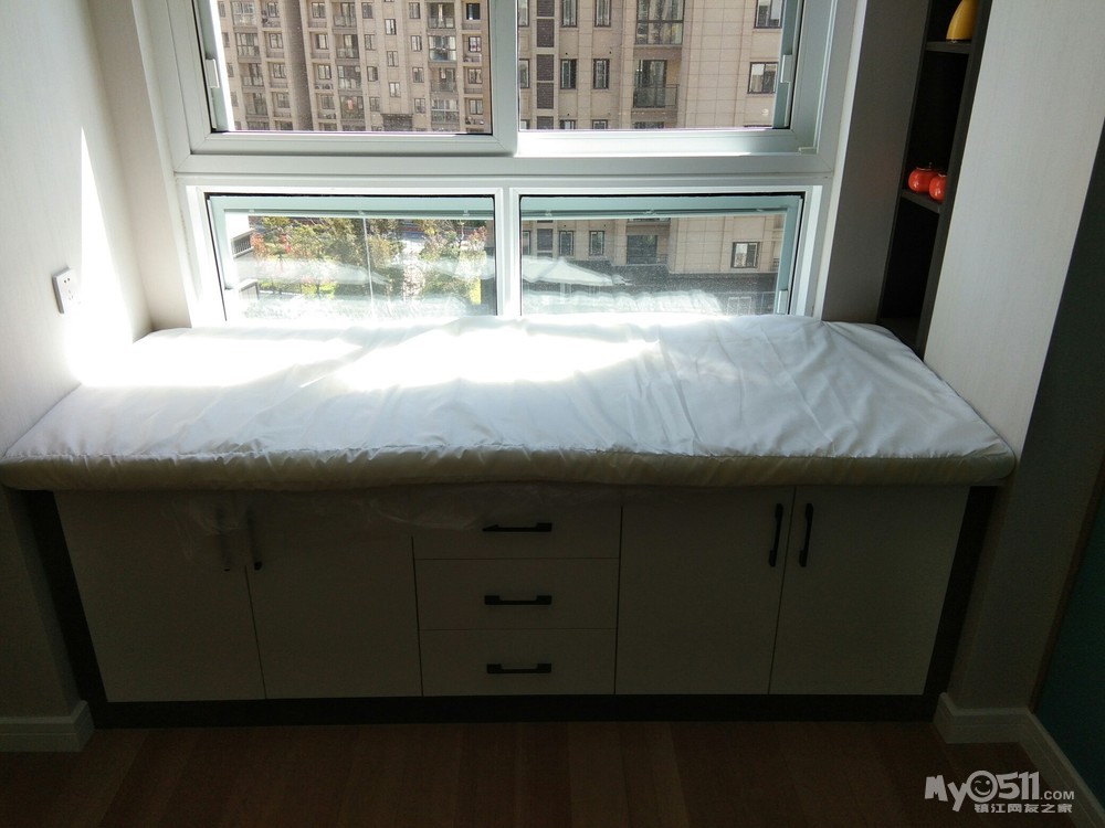 同时,今天快递公司将网购的两个飘窗垫子送货上门,尺寸大小完美覆盖飘窗台面,等待窗帘公司将垫子外套装上后就OK了。