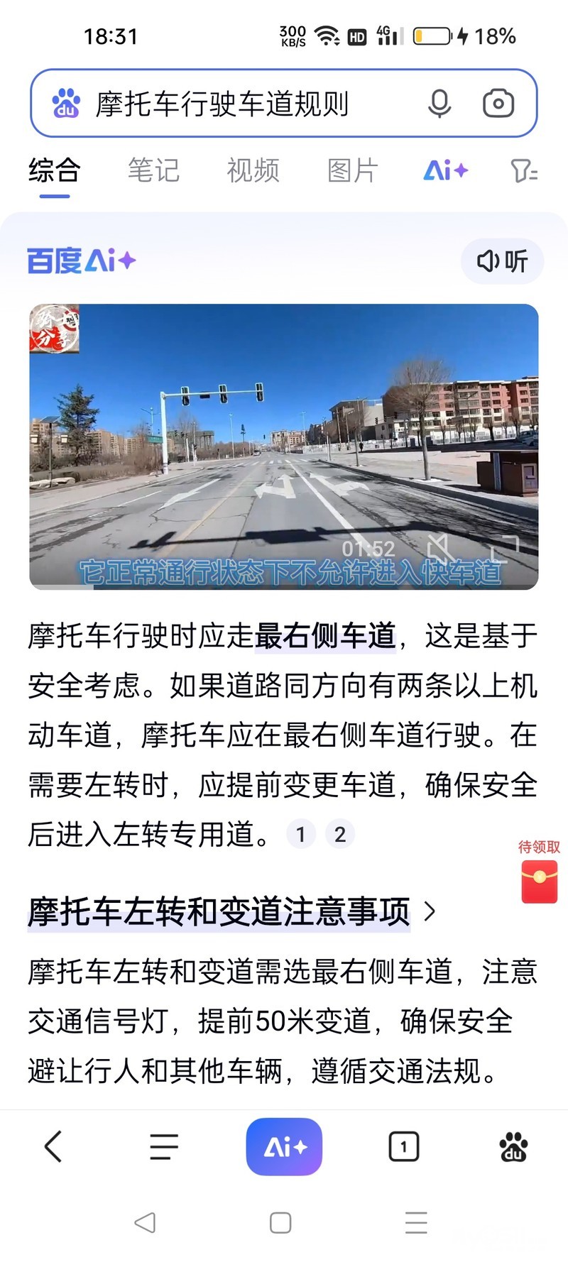 错,摩托车只能靠右行驶